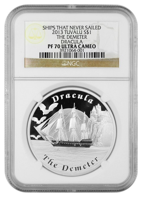 2013 Tuvalu 1 Oz Silver Dracula - The Demeter - Famous Ships That Never Sailed Series $1 NGC PF70 UC Proof 70 Ultra Cameo