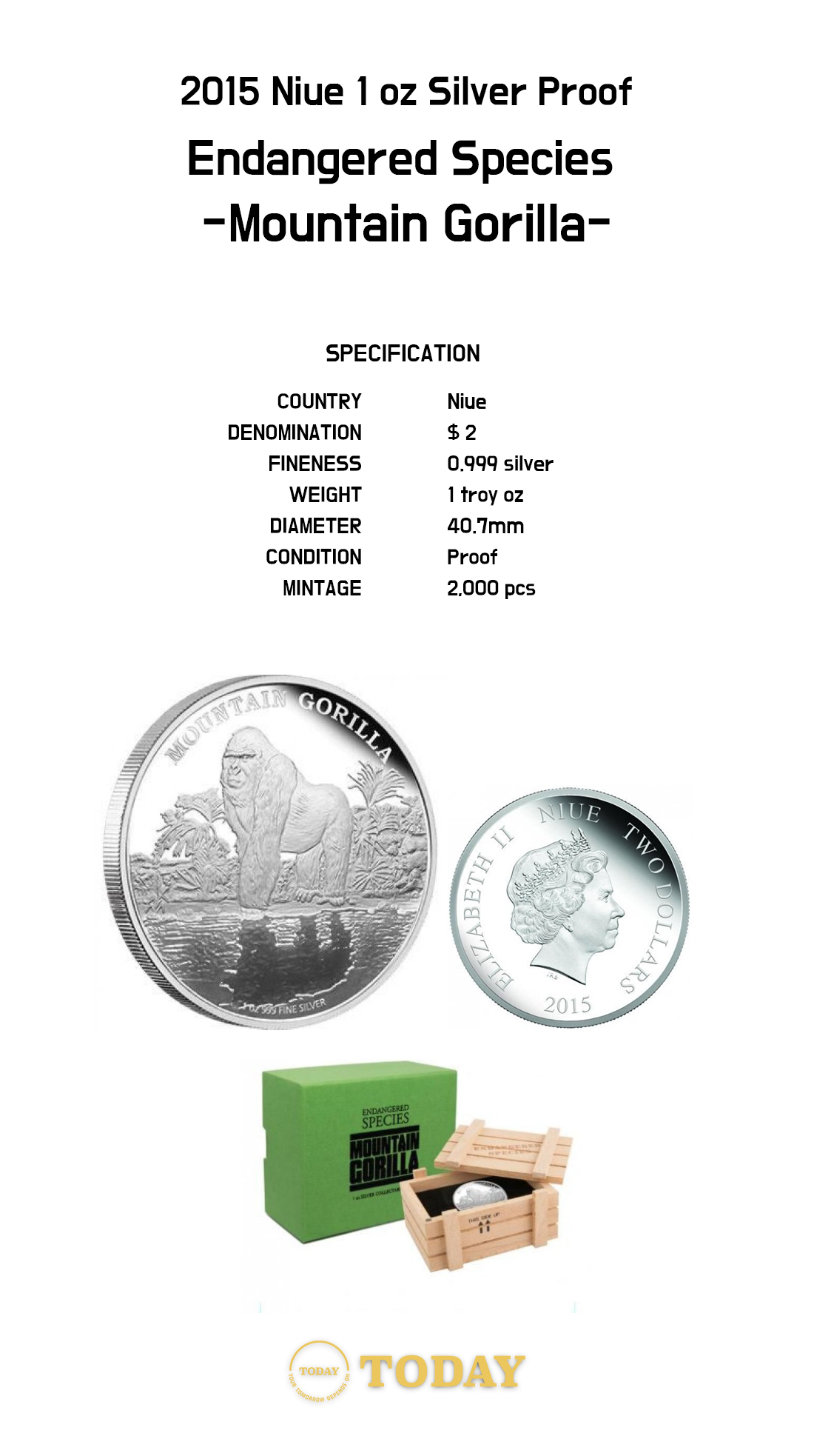 2015 Niue 1 oz Silver Coin 2$ Endangered Species Mountain Gorilla