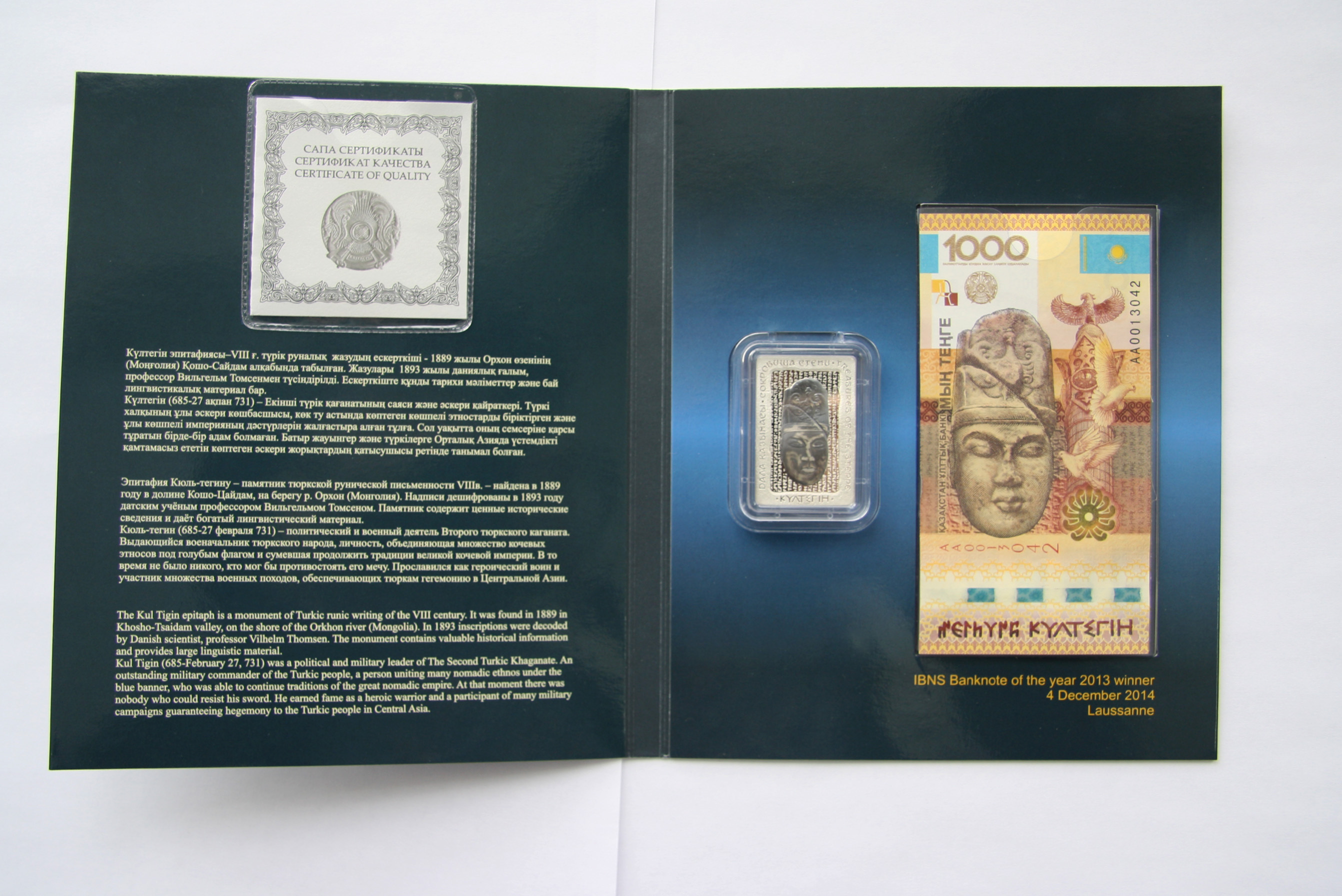 Kazakhstan Coin & Bank Note Set 2016 KAZ Kultegin .925 Silver Coin + 2013 KAZ Kultegin 1000 Tenge Bank Note