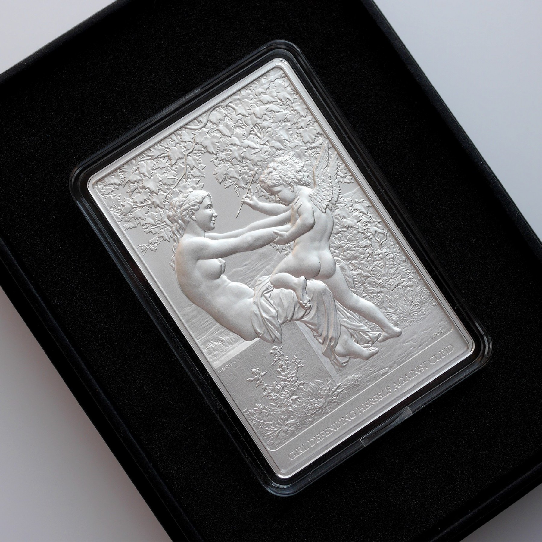 3. Girl Defending Herself Against Cupiud 3 oz Silver Bar (BU)