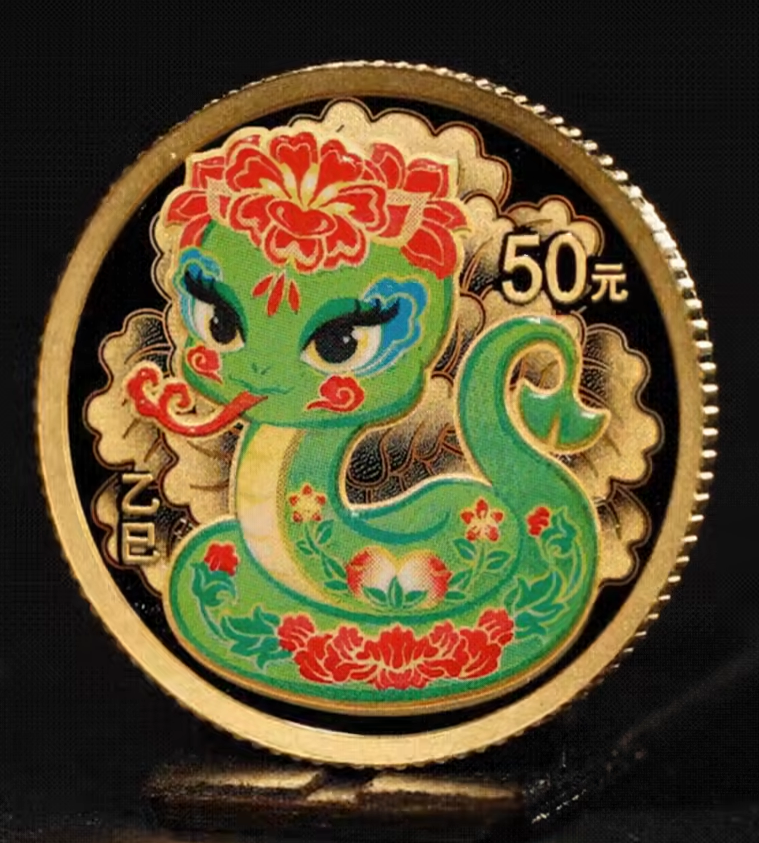 영업일 기준 배송 1-2주 소요 2025 China Lunar Snake Round Shape .999 Coloured Gold and Silver Proof 2 Coin Set