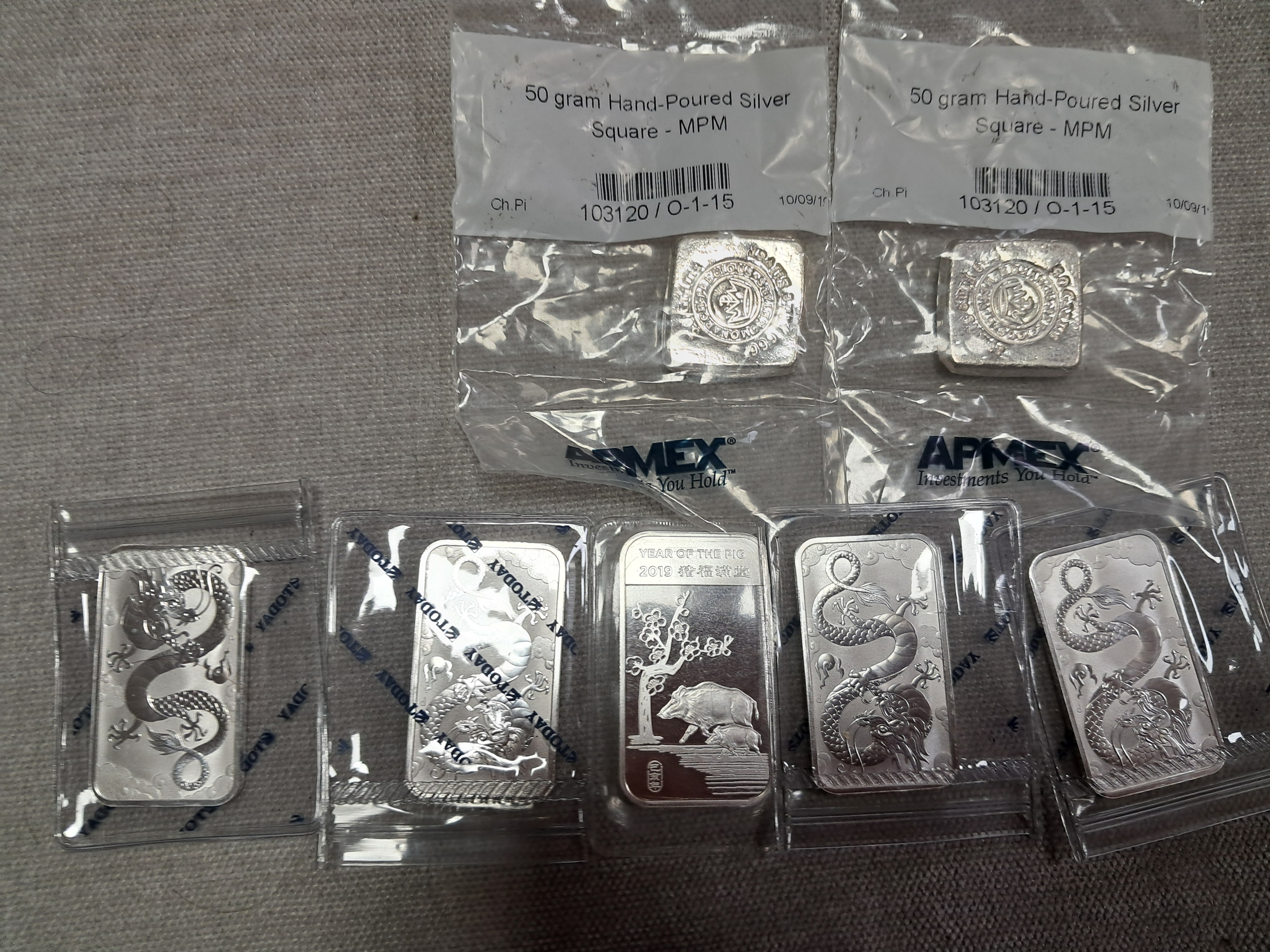 [위탁판매] 미국apmex50그램은괴2개 호주사각드래곤 1온스4개 호주돼지 사각1온 1개 3세트