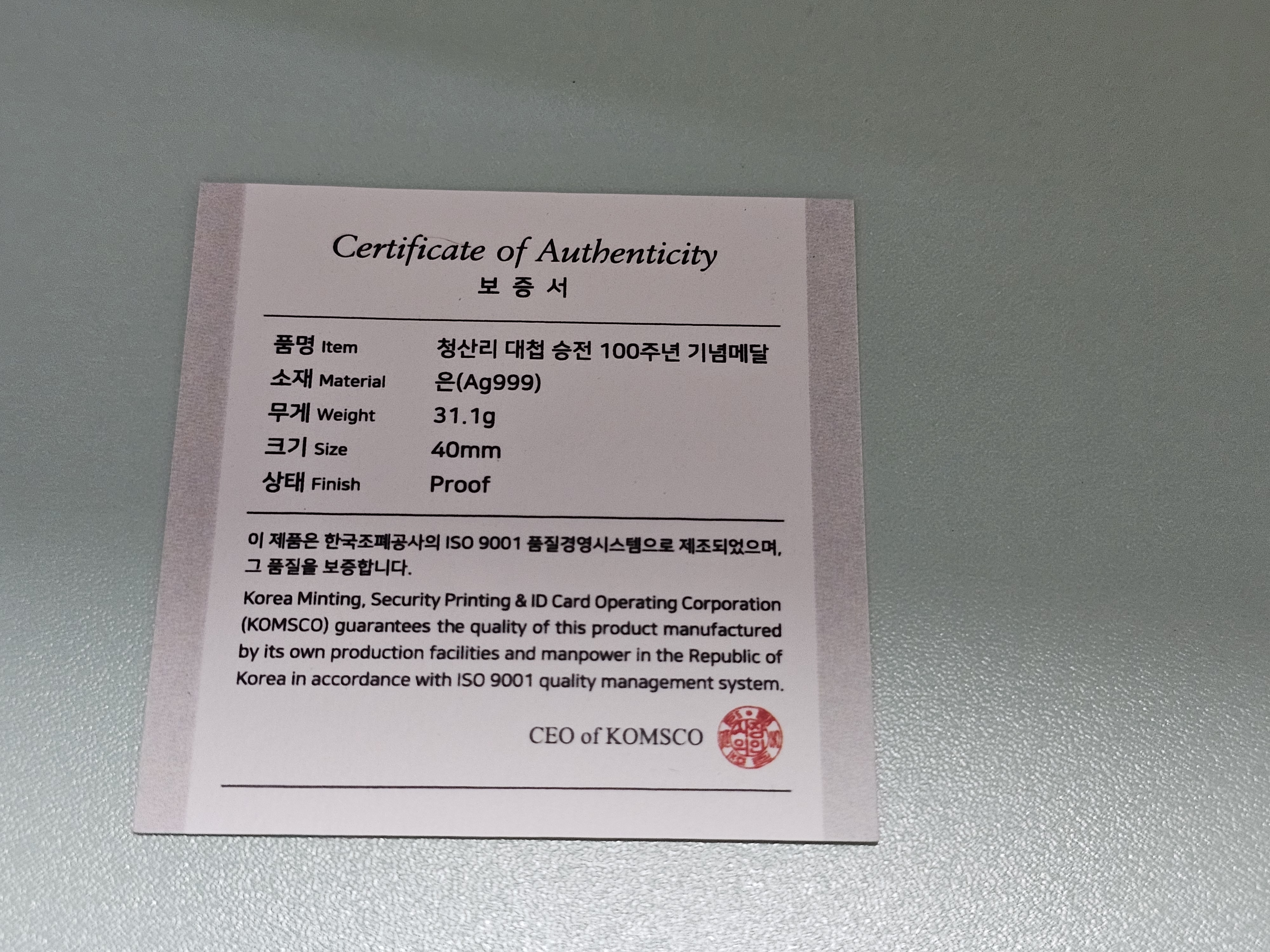 [위탁판매] 청산리 대첩 승전 100주년 기념메달