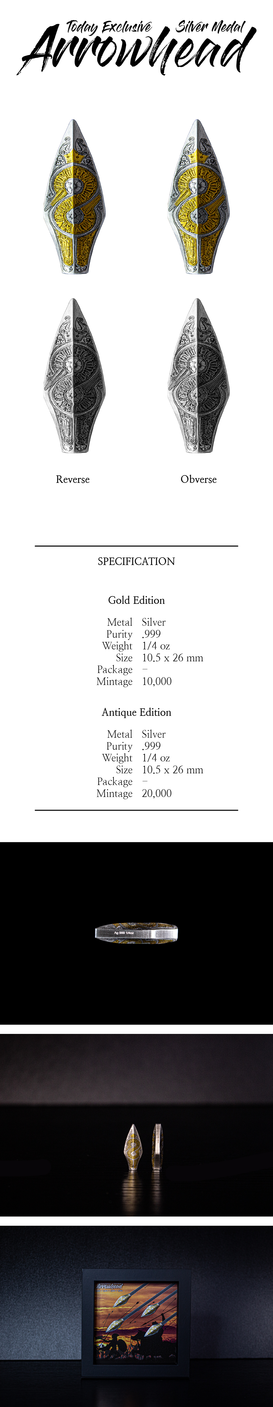 1/4 oz Arrowhead Silver bar Ant Finish AG.999
