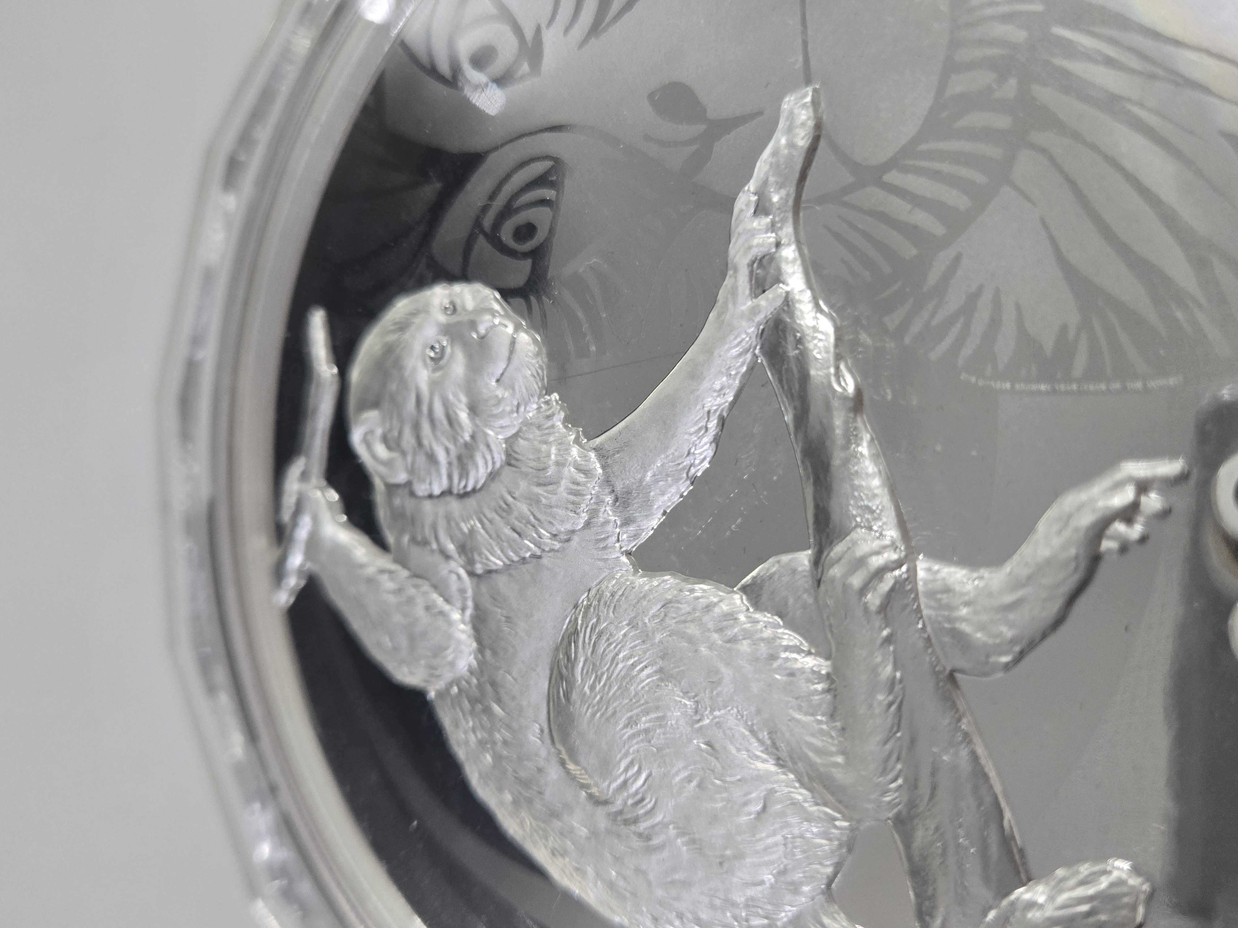1. 2016년 발행 1키로 은화로 세월 대비해서 전면부 후면부 사진처럼 상태 좋습니다2. 옆면사진은 세월이 9년이 넘어서 옅은 토닝이 보여집니다3. 일반블리언 은화가 아닌 중국 루너 프룹 1키로 은화입니다.4. 사진에 보이는 키로은화 캡슐만 포장해서 보내드립니다. 캡슐이외의 케이스는 따로 없습니다.