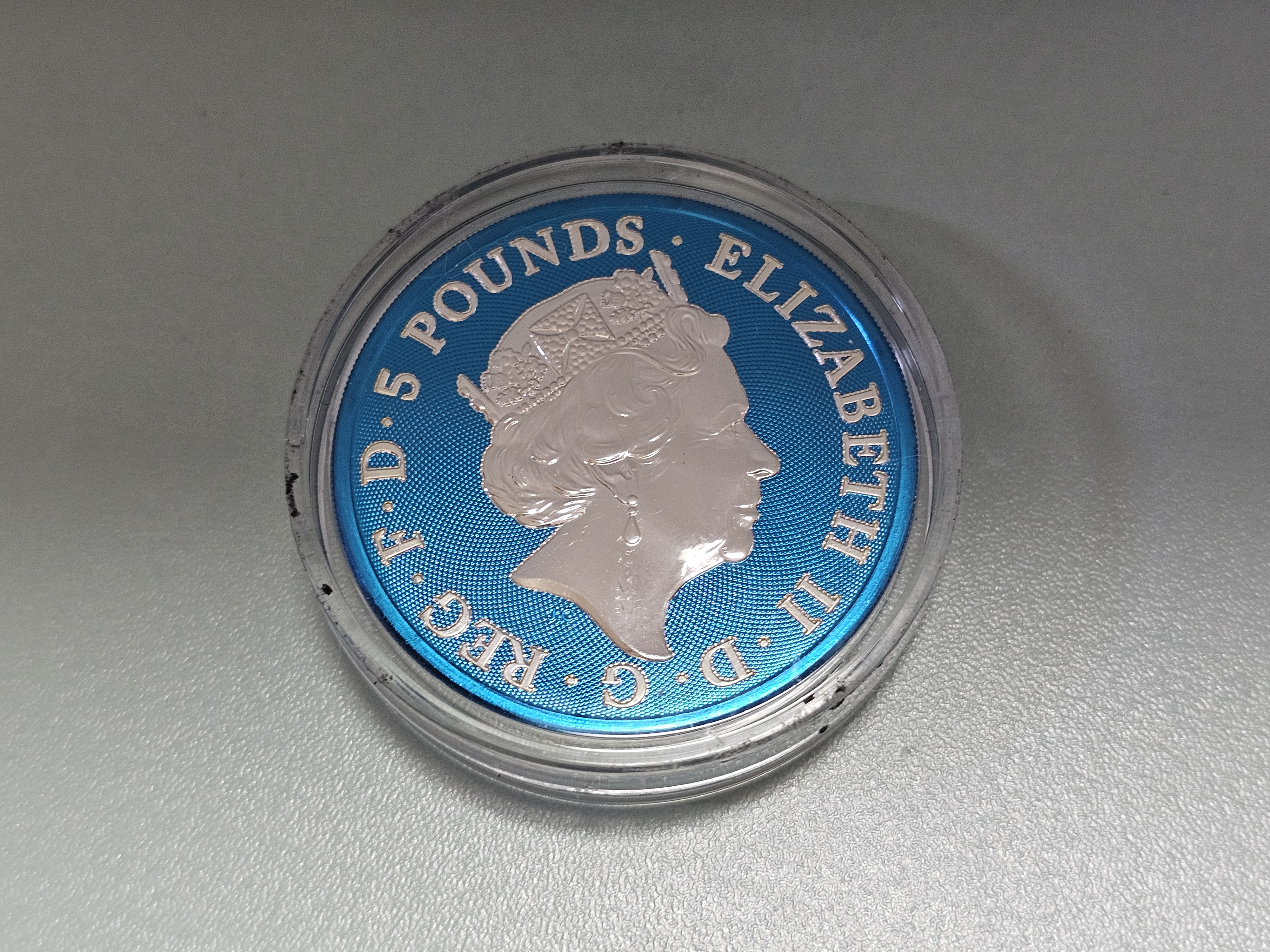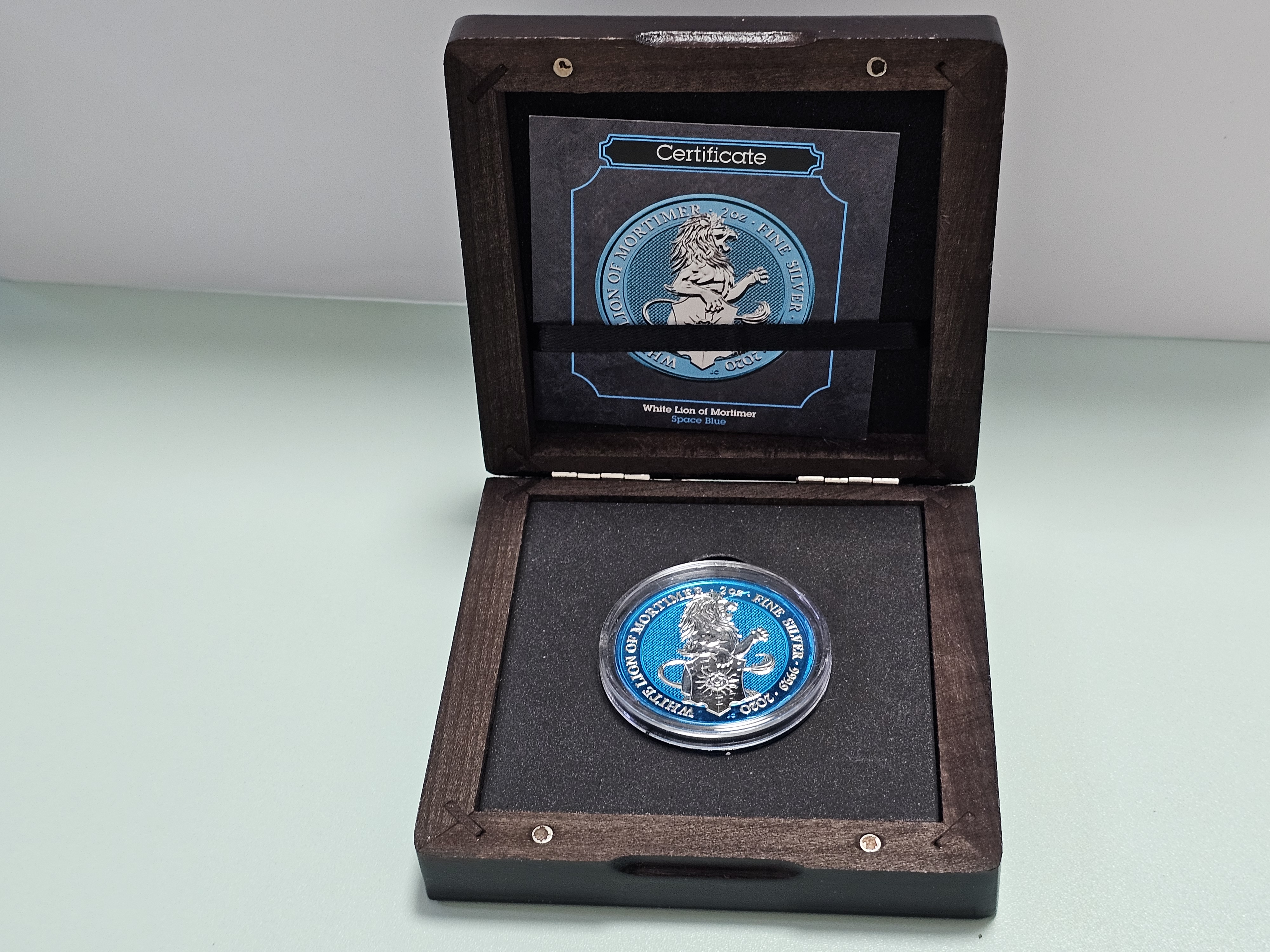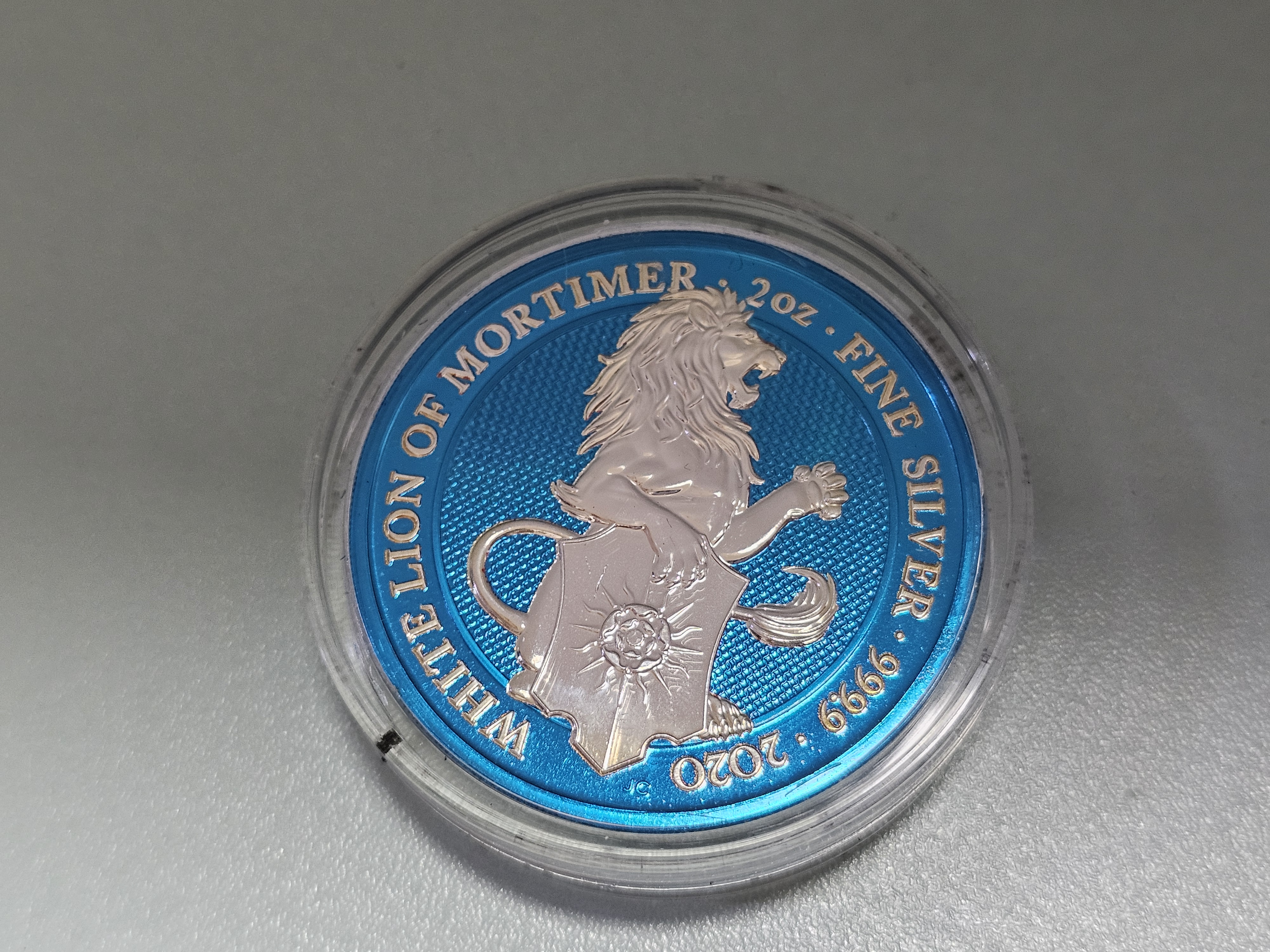 [위탁판매] WHITE LION Mortimer Space Blue Queen Beasts 2 Oz Silver Coin 5£ United Kingdom 2020