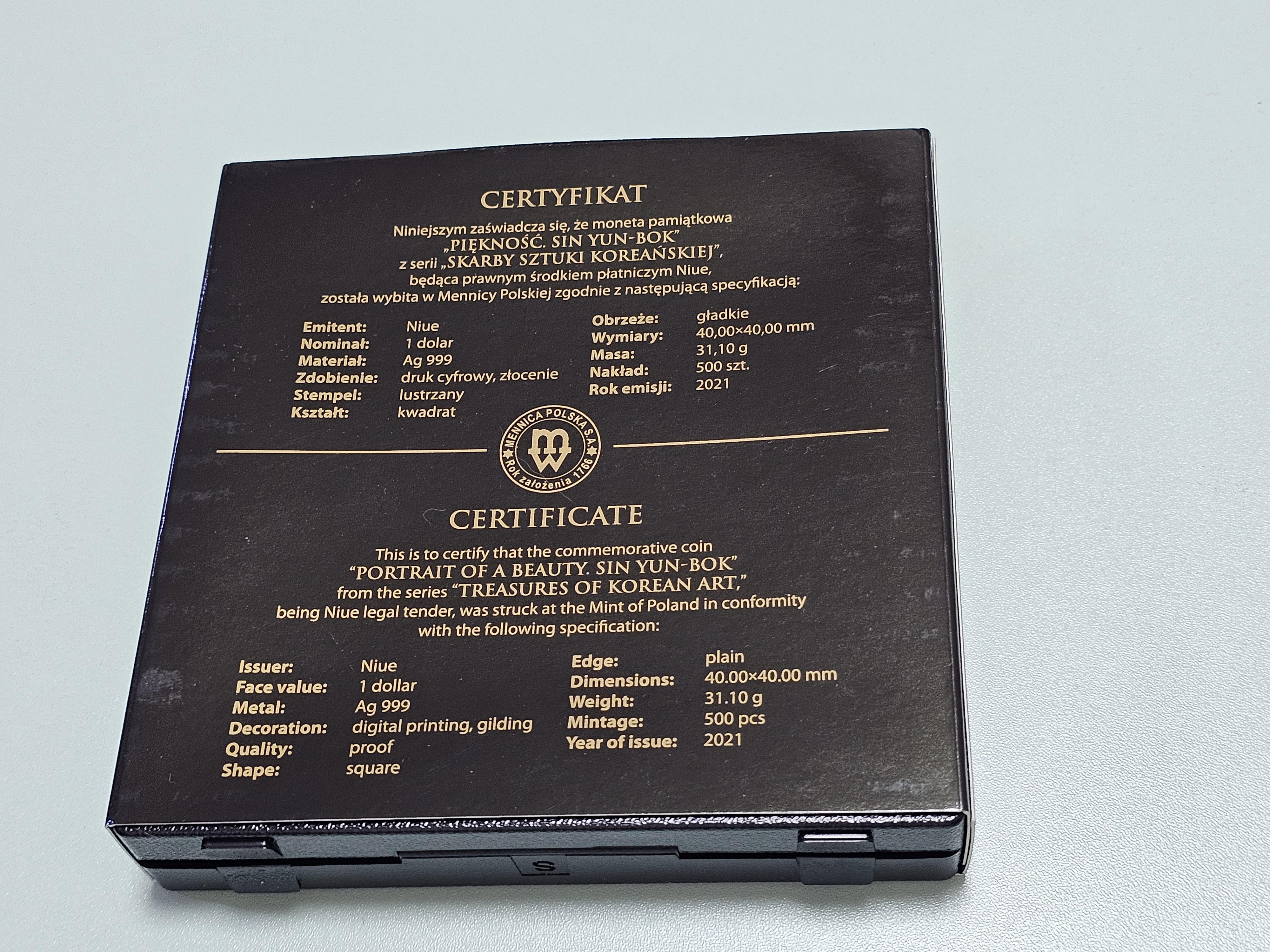 [위탁판매] 2021 Niue 1oz Portrait of a Beauty, Sin Yun-bok from the series "Treasures of Korea Art"