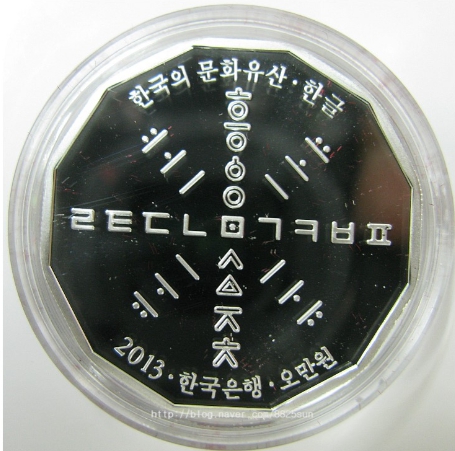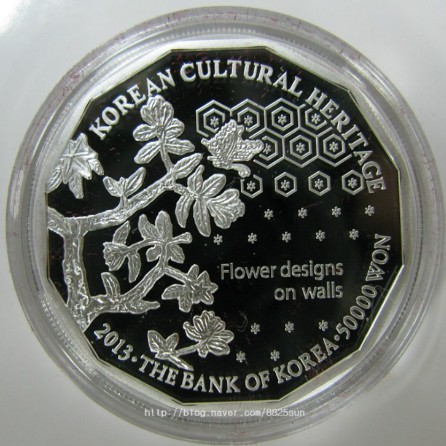 한국의 문화유산 기념주화는 수원화성, 창덕궁, 한글을 소재로 해 3종을 발행하며 액면금액은 5만원인 프루프(Proof)급 은화(은 99.9%)으로 모양은 12각형, 맞변지름은 33mm, 중량은 19g이며 테두리는 톱니모양으로 제조되었읍니다. 프루프(Proof)급 주화란 먼지가 없는 특별한 작업공간에서 낱장 단위로 압인되고 (일반주화의 경우 자동화기기로 대량 압인), 엄격한 개별 검수과정을 거쳐 생산되는 고품질의 무결점 주화입니다. 도안에 있어서는 창덕궁은 인정전을, 수원화성은 구조적 독창성이 뛰어난 서북공심돈을 주제로 표현하고 한글은 훈민정음의 제자원리(製字原理)를 시각화했으며, 공통으로 적용되는 뒷면은 경복궁 자경전의 꽃담을 주제로 하여 한국적 전통미를 표현했습니다. 그리고 발행량은 창덕궁 10,157개, 수원화성 9,923개, 한글자모원리 10,205개입니다. 급격한 은값의 상승으로 한국은화의 상승여력이 충분할 것으로 사료되오니, 은화 수집에 즐투 하시기 바랍니다. 보관 상태 양호합니다.