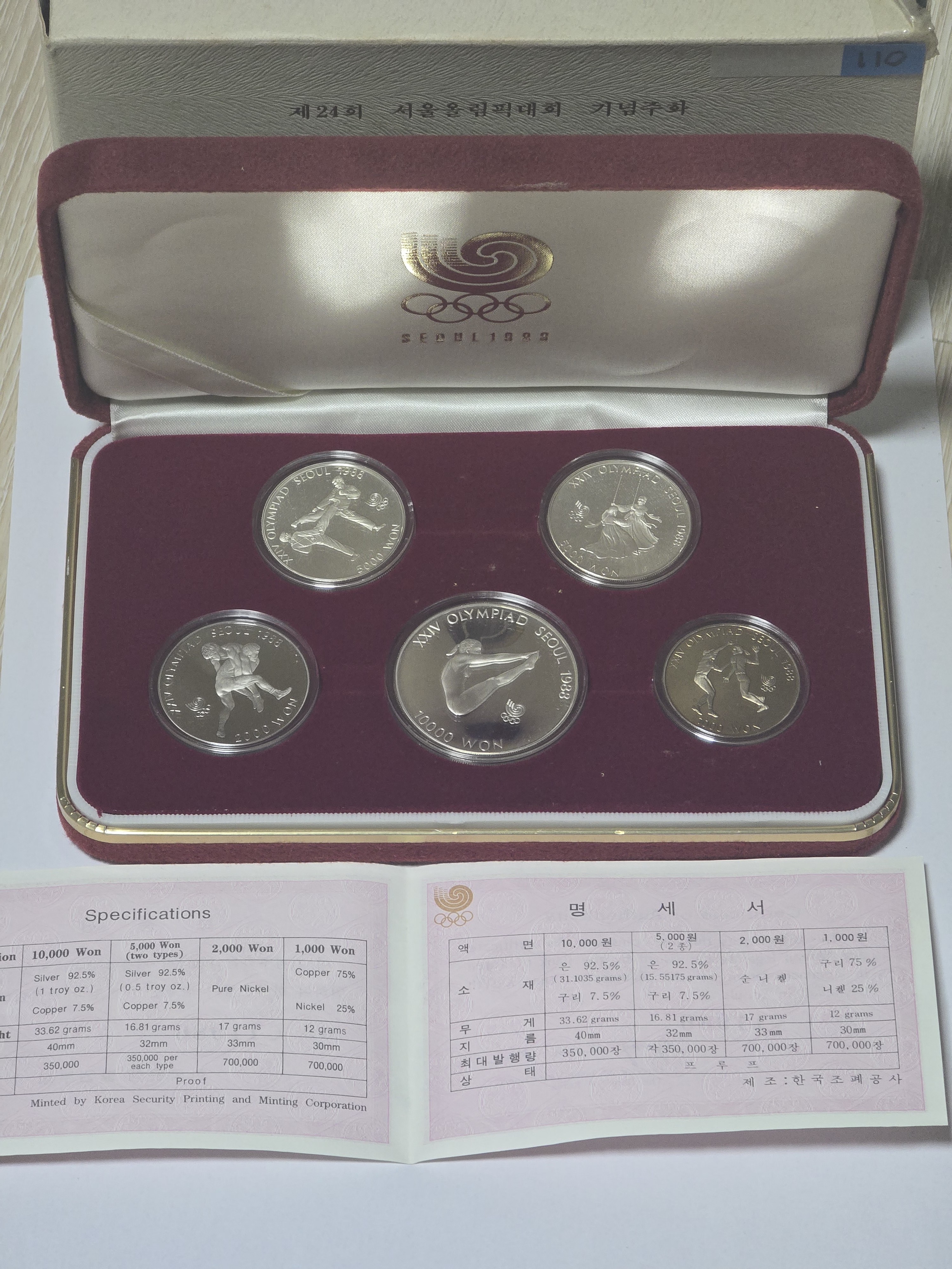 [위탁판매] 1988 서울올림픽 기념은화 2차 5종 세트, 프루프, 수집용 코인