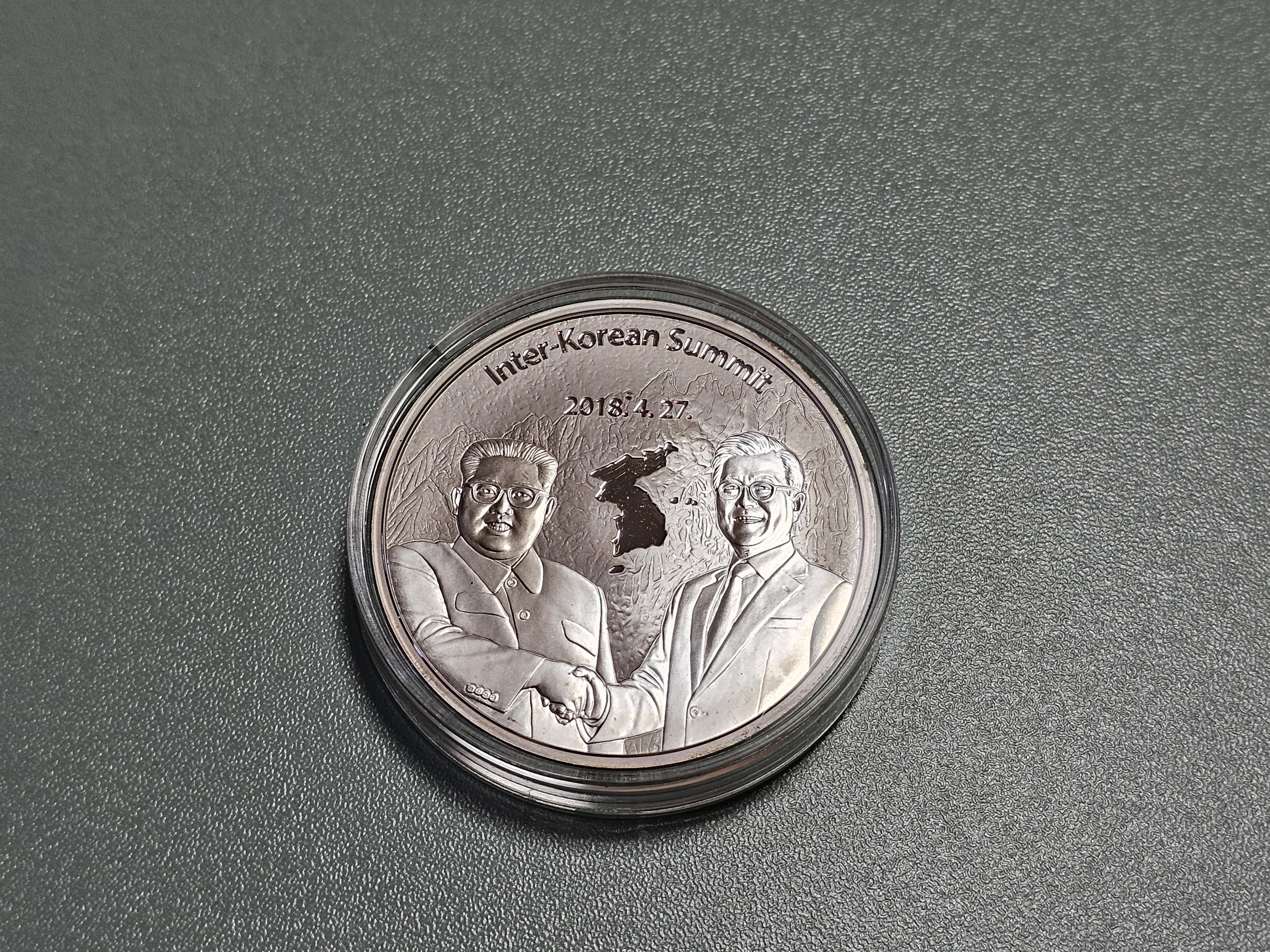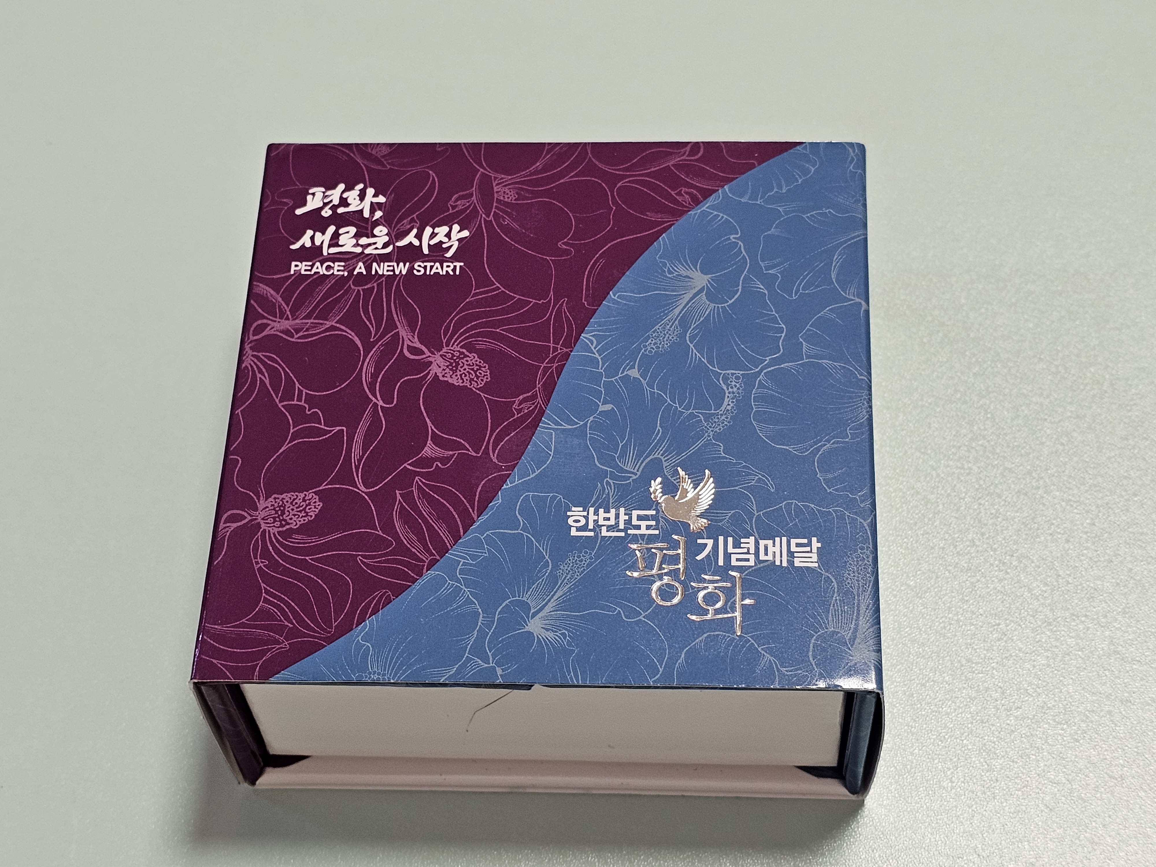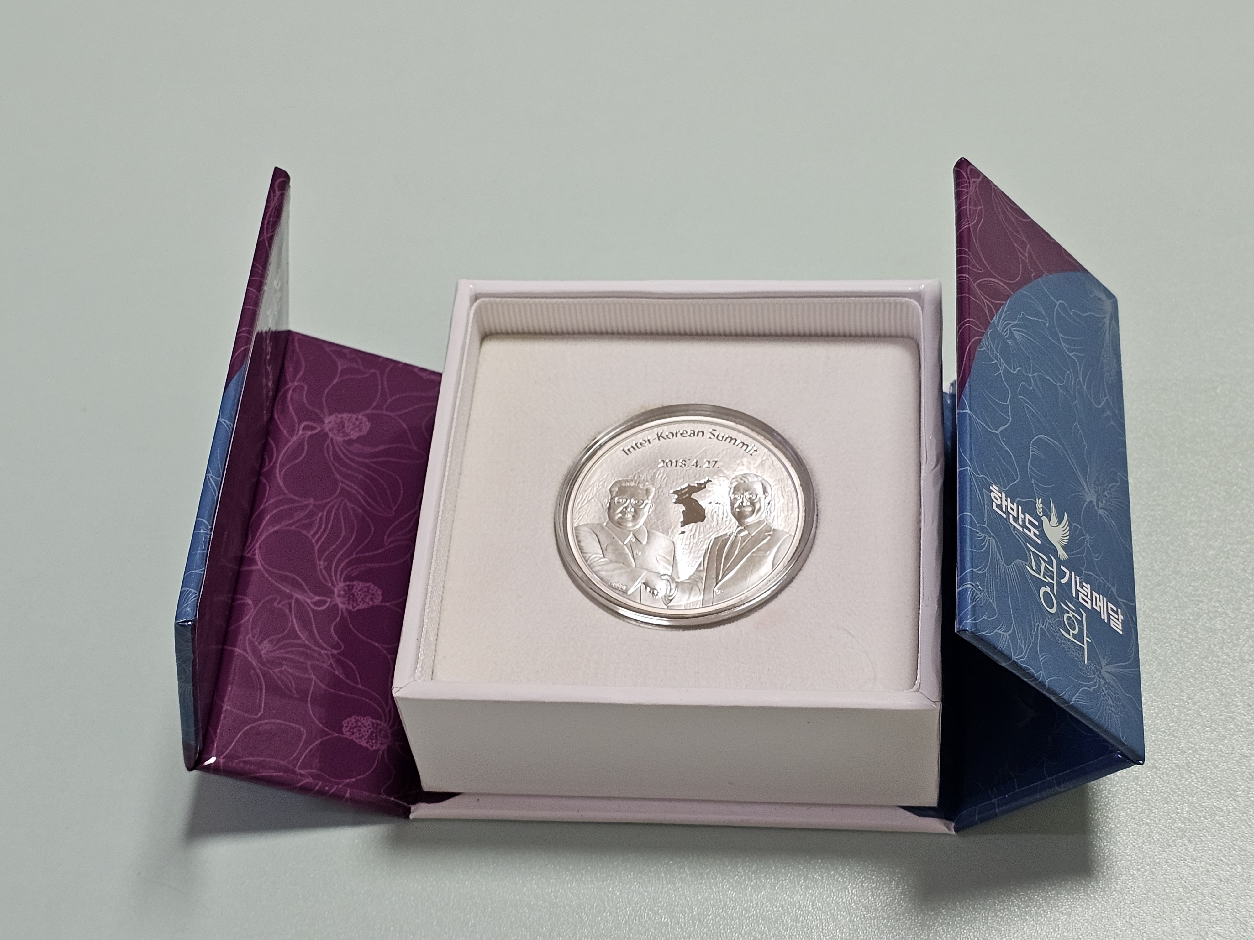 한반도 평화 기념 “평화, 새로운 시작” 2018 남북정상회담 기념메달 림쪽 토닝있고 코어 박스 미세 오염있음