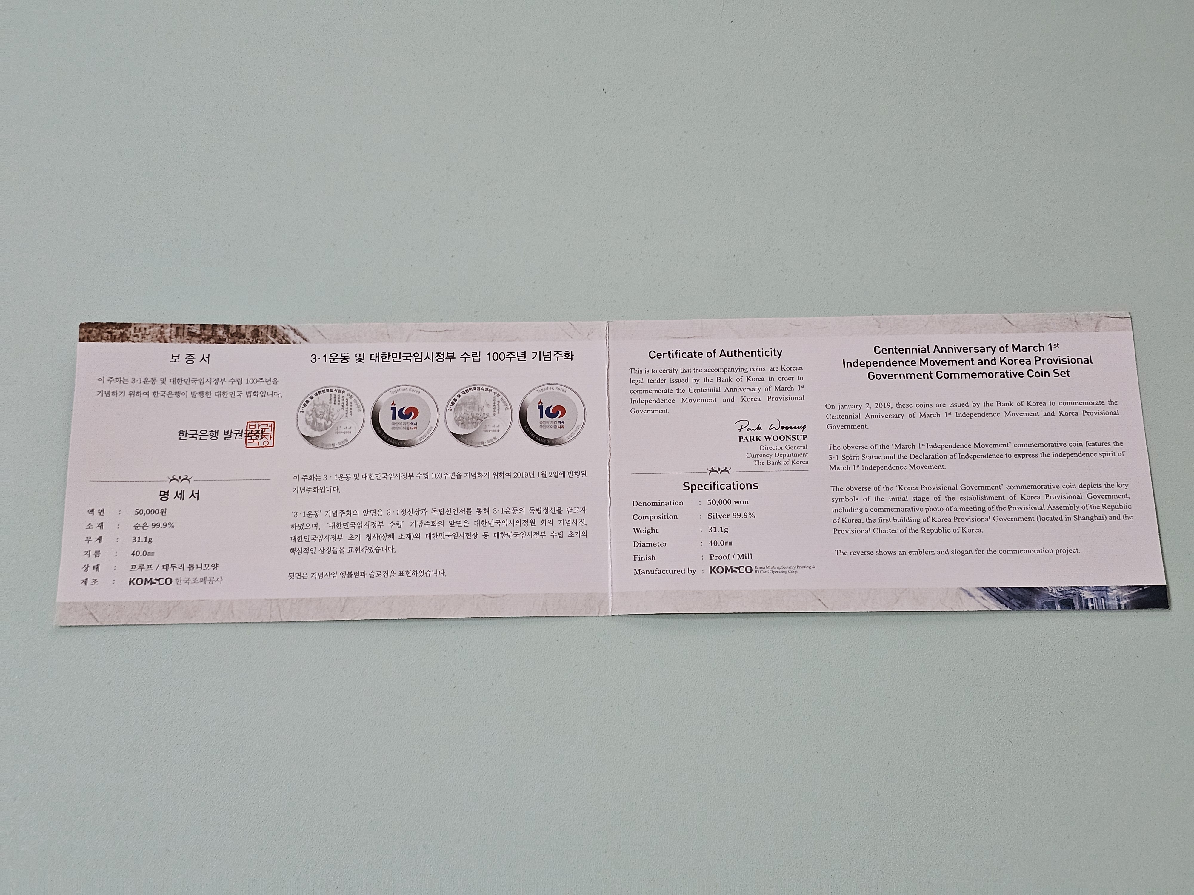[위탁판매] 3.1운동 및 대한민국임시정부 수립 100주년 기념주화(1차 2종세트)