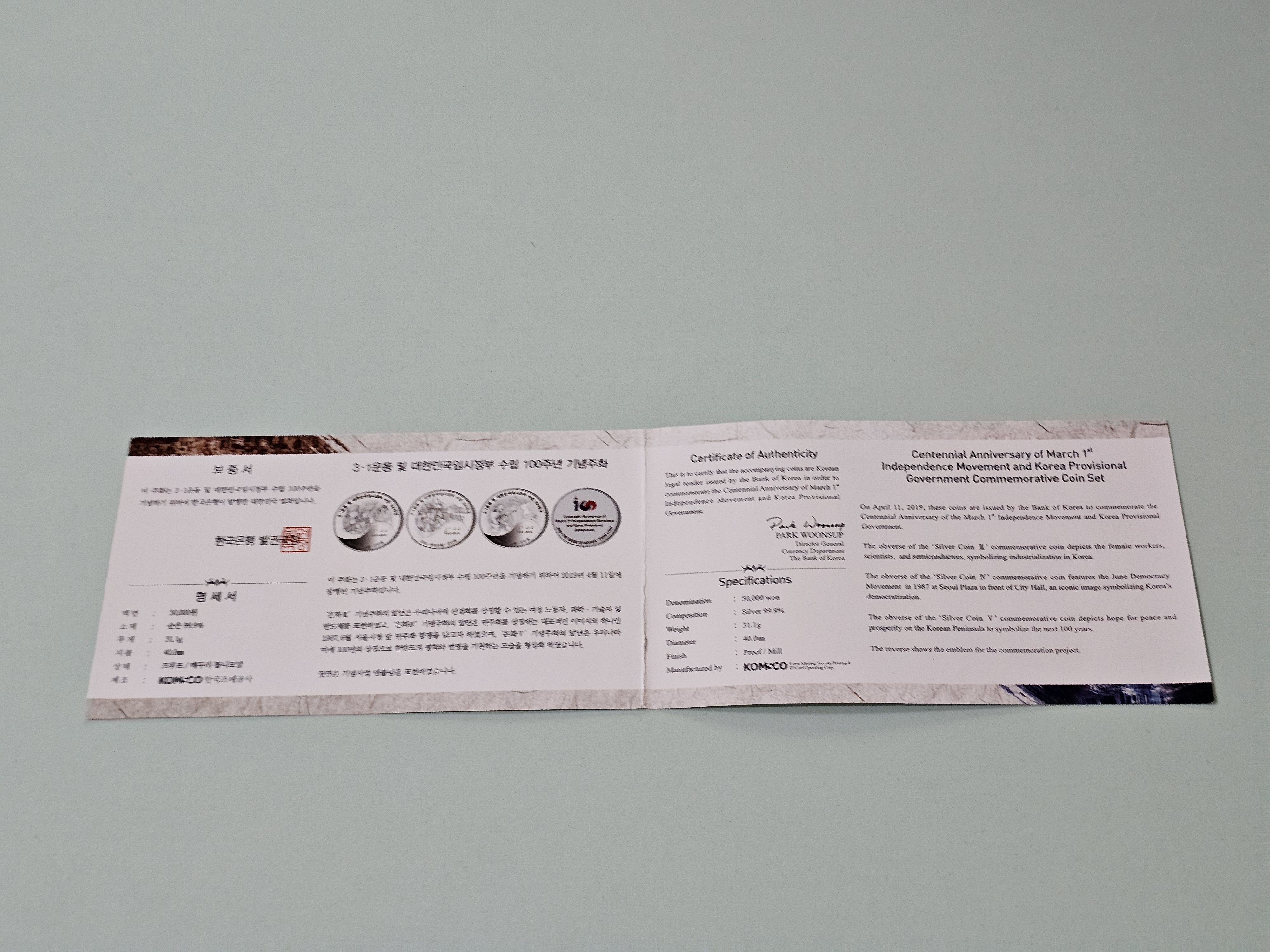 [위탁판매] 3.1운동 및 대한민국임시정부 수립 100주년 기념주화(2차 3종세트)