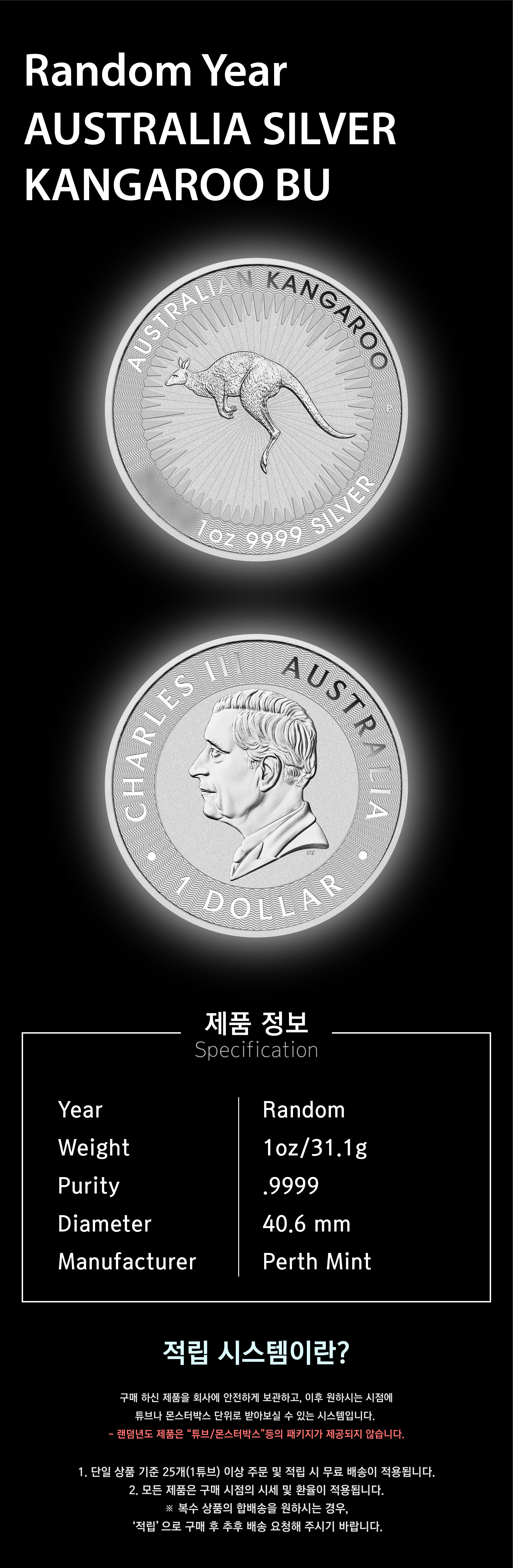 영업일 기준 배송 8-10주 소요 예상 Random Year Australia 1 oz Silver Kangaroo BU