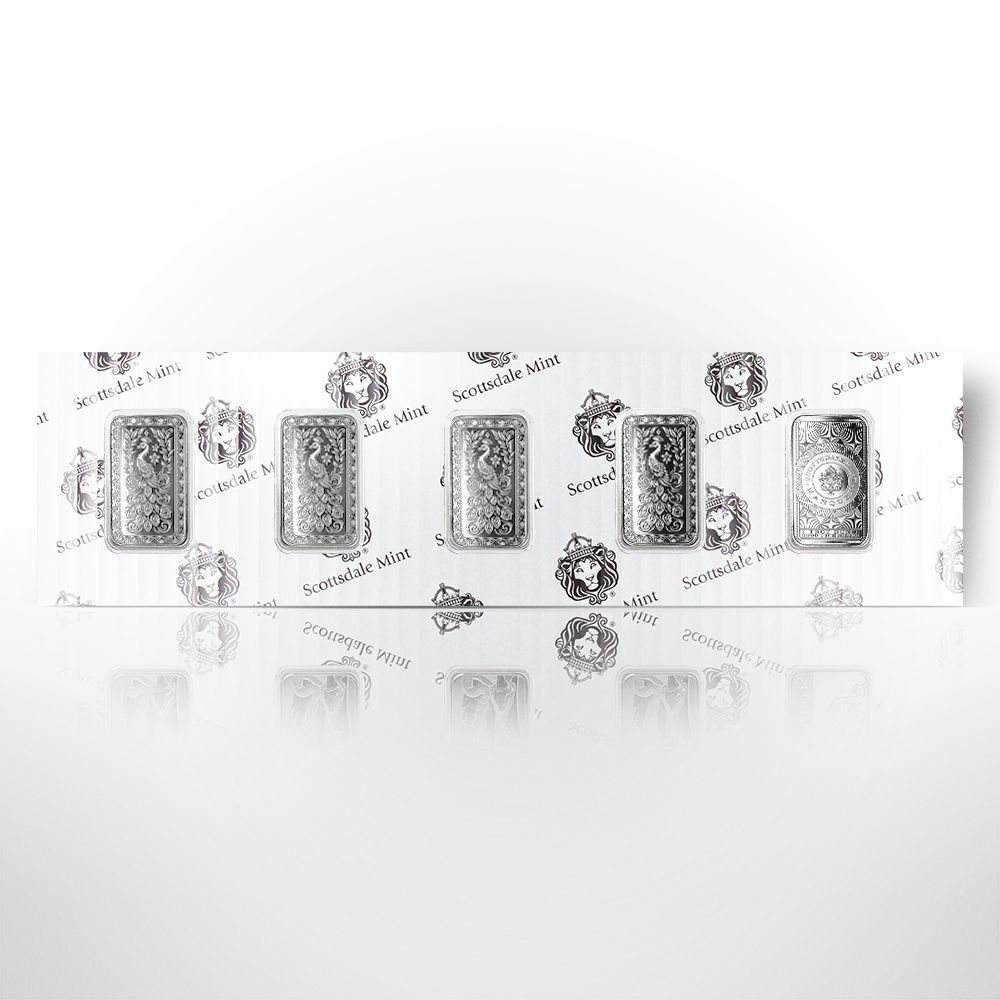 영업일 기준 배송 8-10주 소요 예상 Scottsdale Marquee Peacock 1 oz Silver Bar