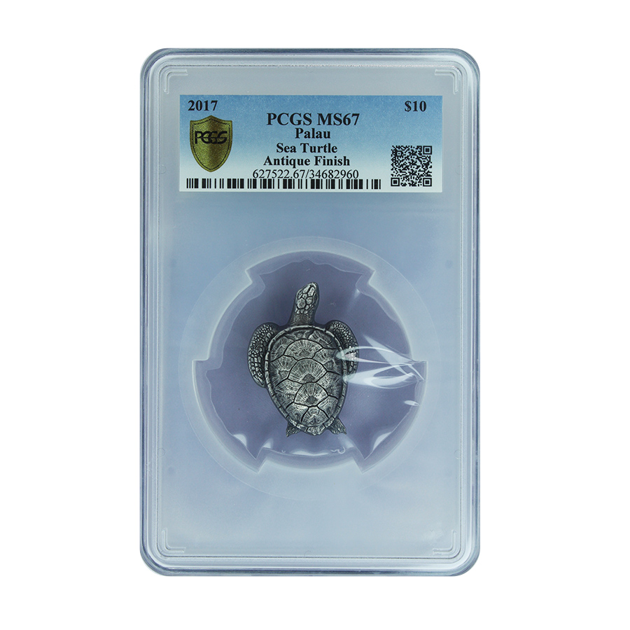 2017 Palau 45g Silver Coin - Sea Turtle PCGS MS67 Gold Shield Label [2017년 팔라우 45그람 바다거북이 은화]