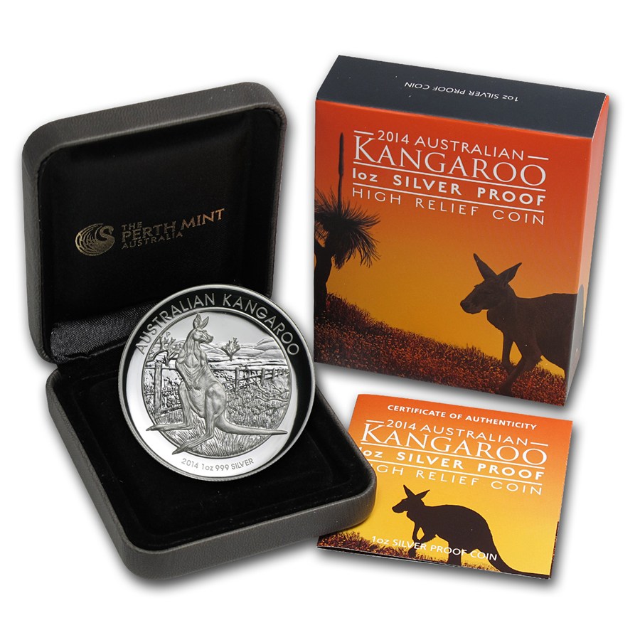 2014 Australia 1 oz Silver Kangaroo Proof (High Relief) [2014년 호주 1온스 캥거루 하이릴리프 프루프 은화]