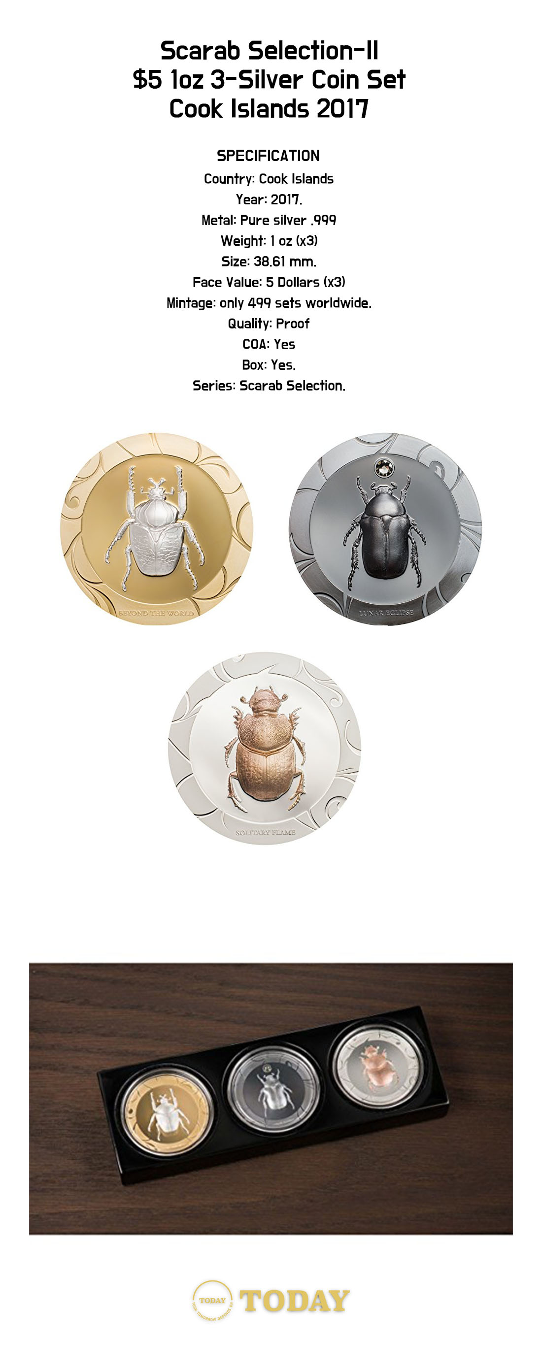 2017 CooK Island 1 oz Silver Coin Set (x3) - Scarab Selection Ⅲ [붉은 새벽, 사막의 열기, 검은 왕국 - 풍뎅이 1온스 x 3개 은화]