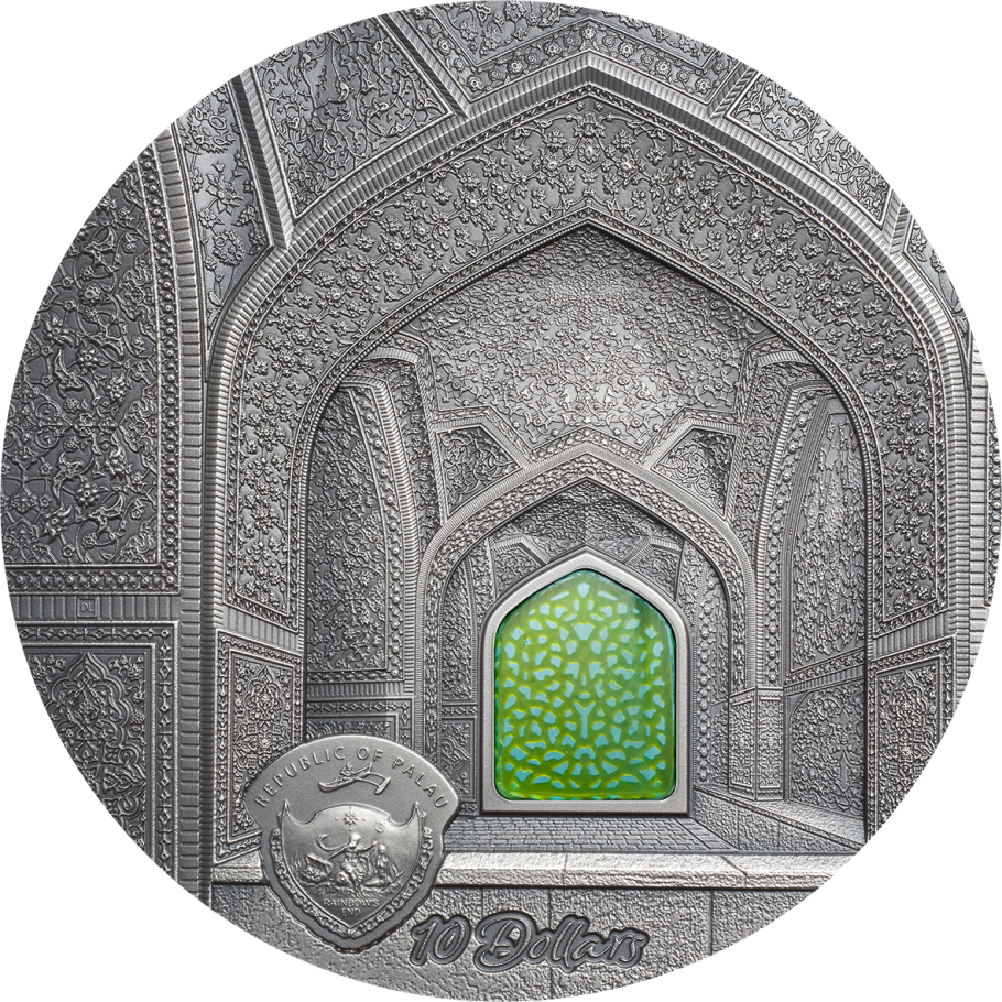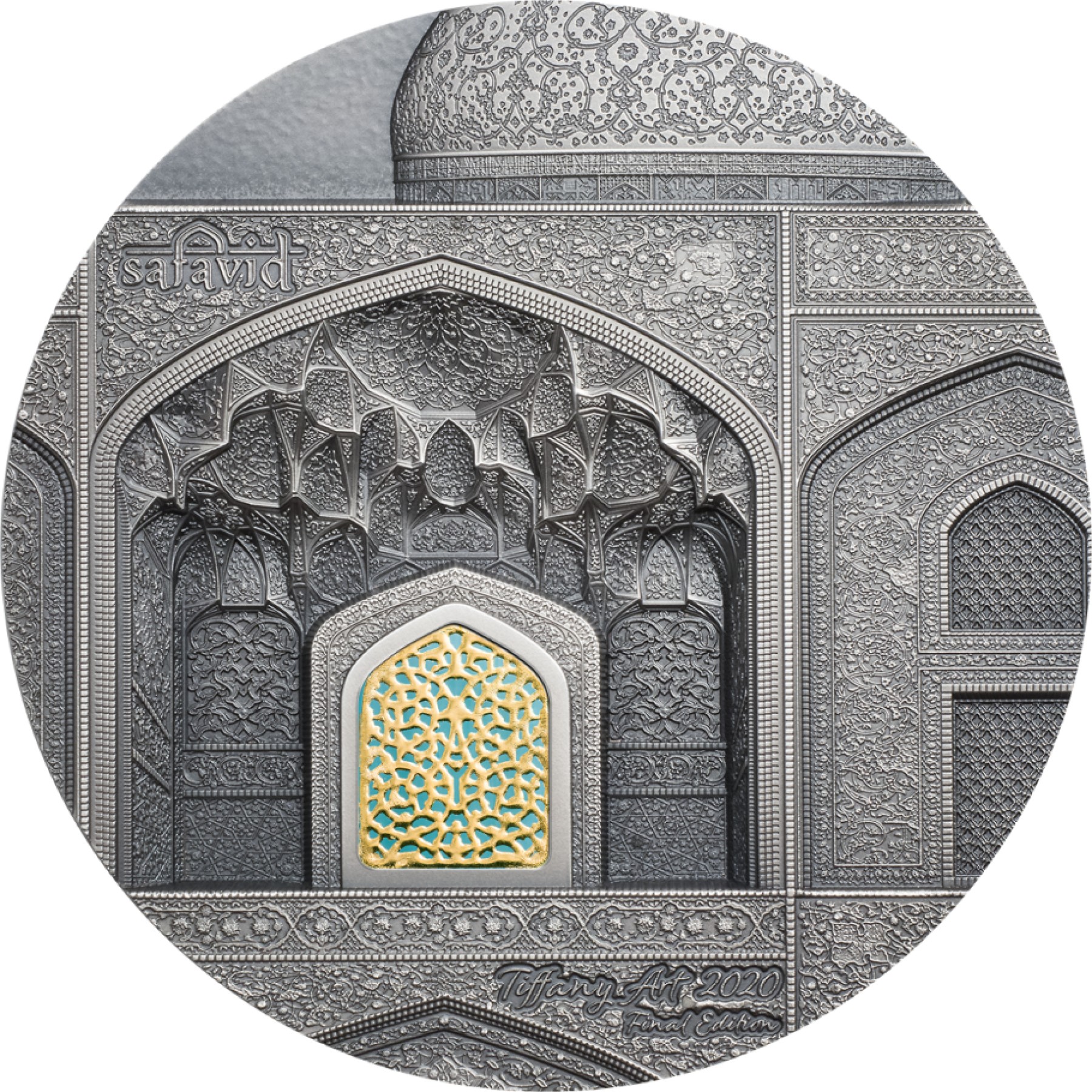 This year’s “Tiffany Art” Edition represents the final 2 oz silver issue in this multi-year award winning series. The series has been a numismatic classic ever since its release back in 2004 and this release is a fitting finale. This magnificent piece highlights the architectural wonder of Naghsh-e Jahan Square in Isfahan, Iran, also known as Imam Square. This Unesco World Heritage site is one of the largest city center squares in the world and a treasure of Persian architecture and art.The highly detailed relief honors the architecture of the Sheikh Lotfollah Mosque that is located on the east side of the city square. With its magnificent arches and tile work, it amazes all visitors.