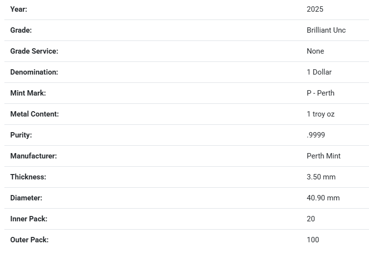 영업일 기준 배송 4-5주 소요 2025 Australia 1 oz Silver Koala BU