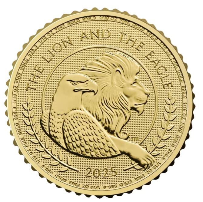 영업일 기준 배송 4-6주 소요 2025 1/10 oz Great Britain Lion and Eagle .9999 Gold BU Coin