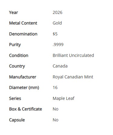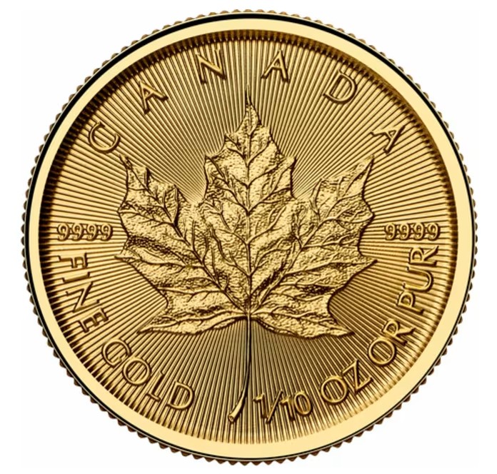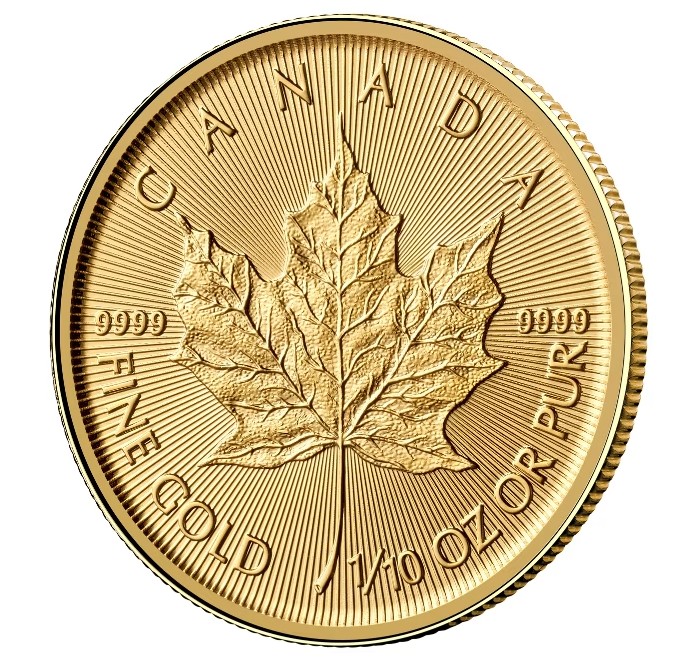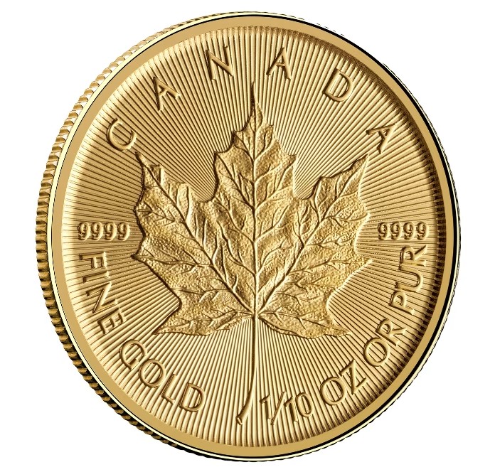 영업일 기준 배송 4-6주 소요 2026 1/10 oz Canada Maple Leaf .9999 Gold BU Coin