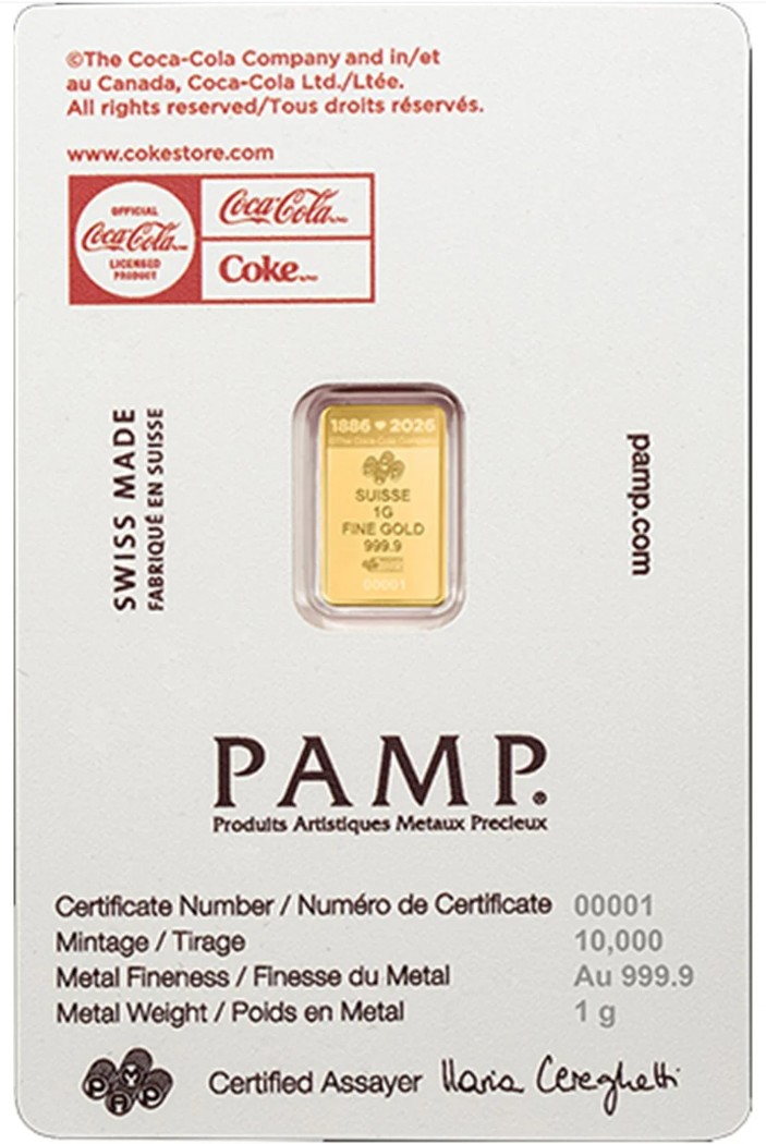 영업일 기준 배송 4-6주 소요 2026 Valentine's Day 1 gram Gold Bar in TEP - Coca-Cola