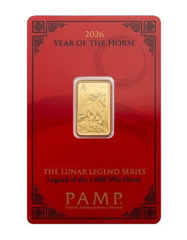 영업일 기준 배송 4-6주 소요 5g Gold Bar - PAMP 2026 Lunar Legends Year of the Horse (In Assay)