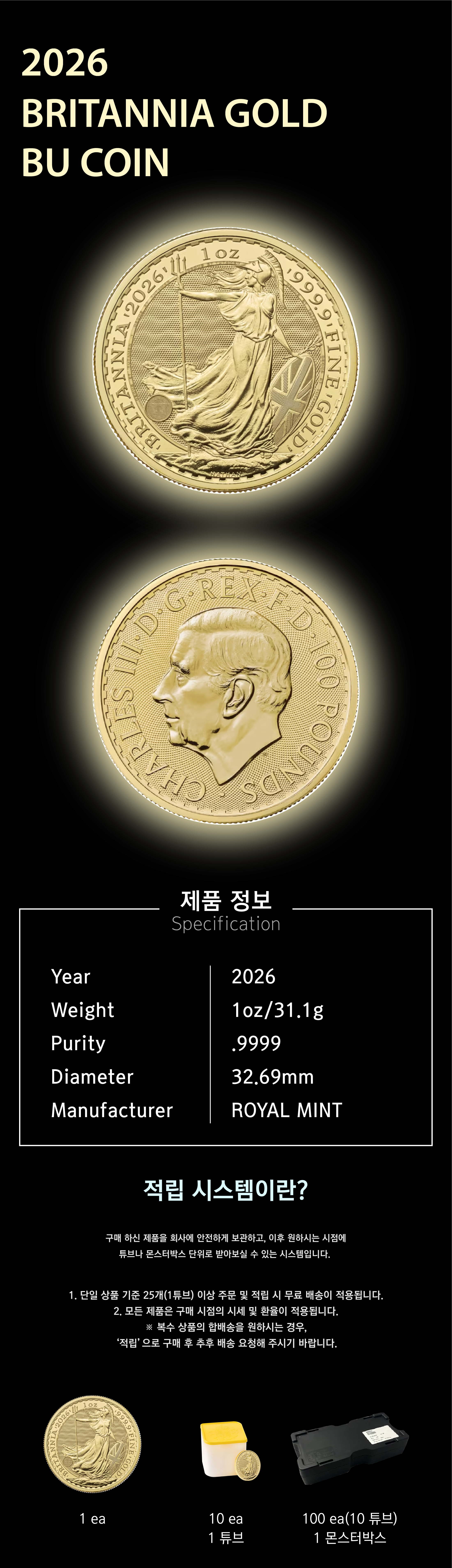 영업일 기준 배송 4-5주 소요 2026 1 oz Great Britain Britannia .9999 Gold BU Coin