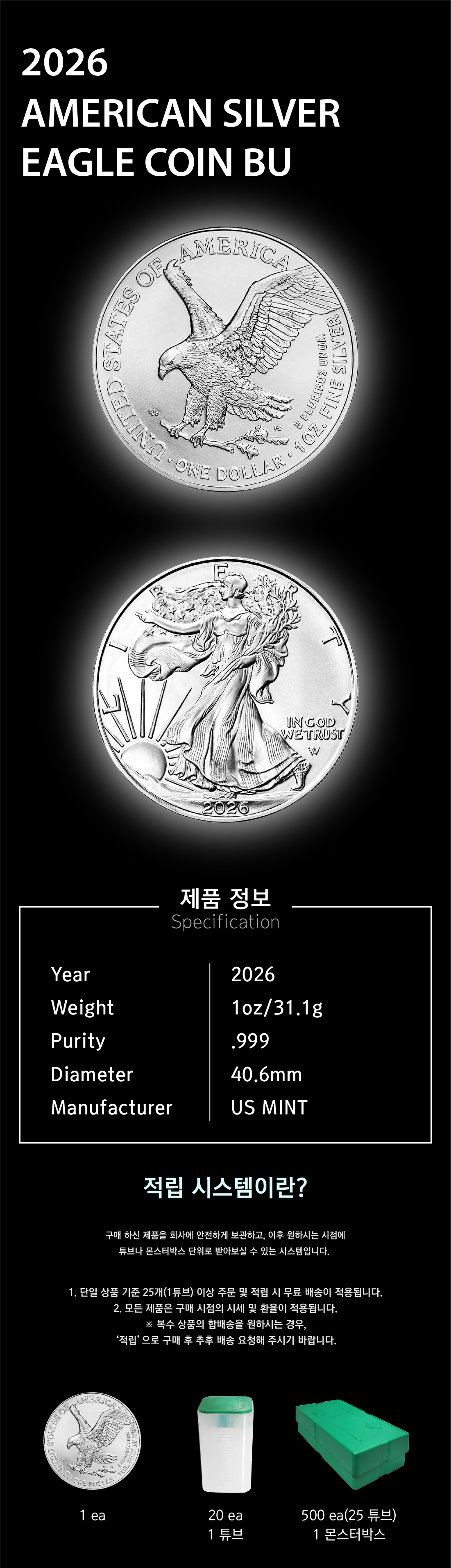 영업일 기준 배송 4-6주 소요 2026 1 oz American Silver Eagle Coin BU