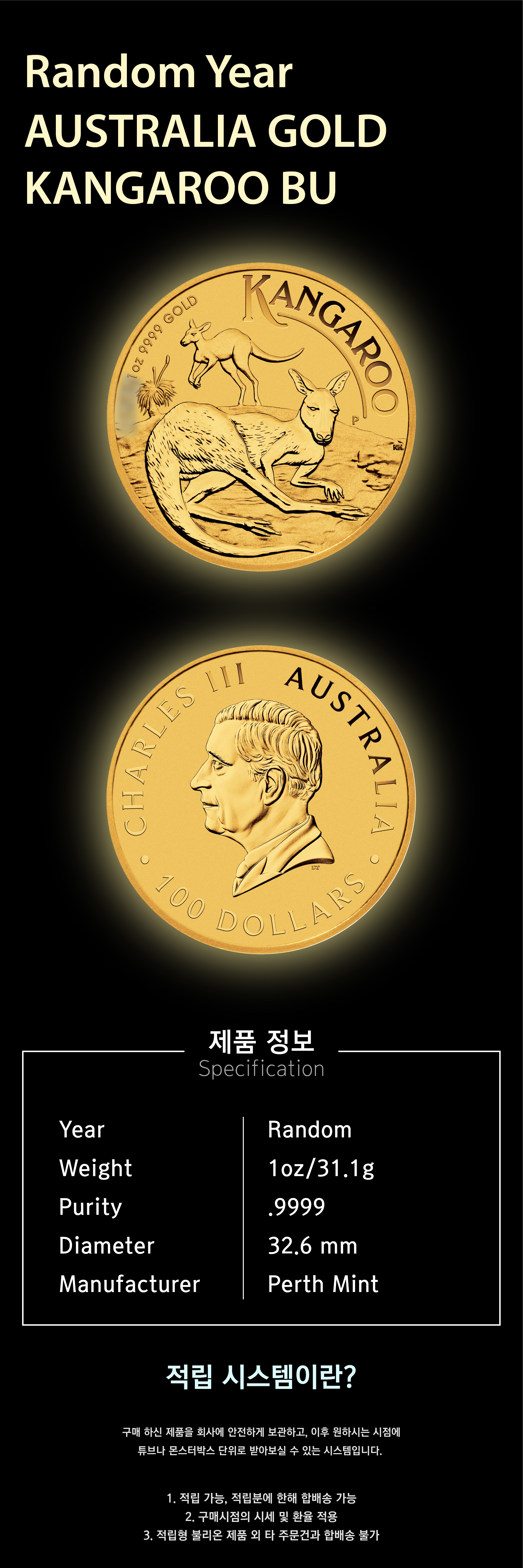 영업일 기준 배송 3-4주 소요 Random Year Australia 1 oz Gold Kangaroo BU