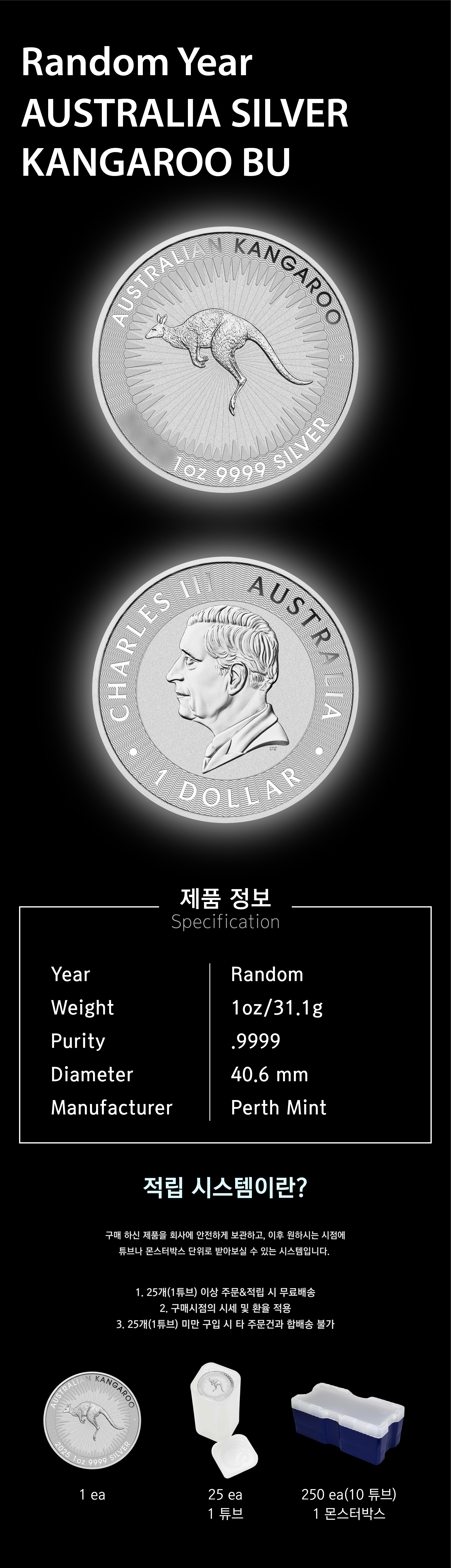 영업일 기준 배송 3-4주 소요 Random Year Australia 1 oz Silver Kangaroo BU