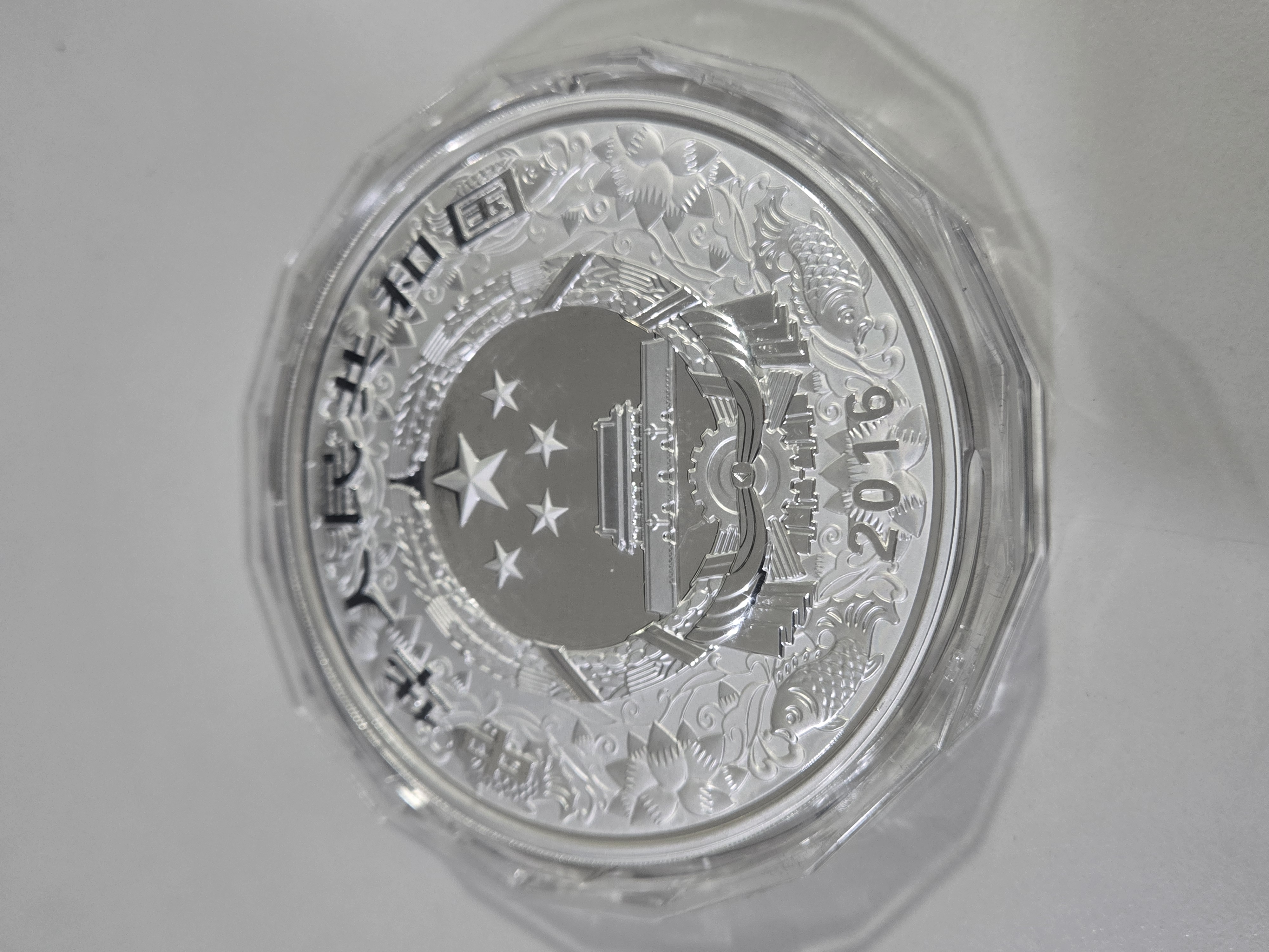 1. 2016년 발행 1키로 은화로 세월 대비해서 전면부 후면부 사진처럼 상태 좋습니다2. 옆면사진은 세월이 9년이 넘어서 옅은 토닝이 보여집니다3. 일반블리언 은화가 아닌 중국 루너 프룹 1키로 은화입니다.4. 사진에 보이는 키로은화 캡슐만 포장해서 보내드립니다. 캡슐이외의 케이스는 따로 없습니다.