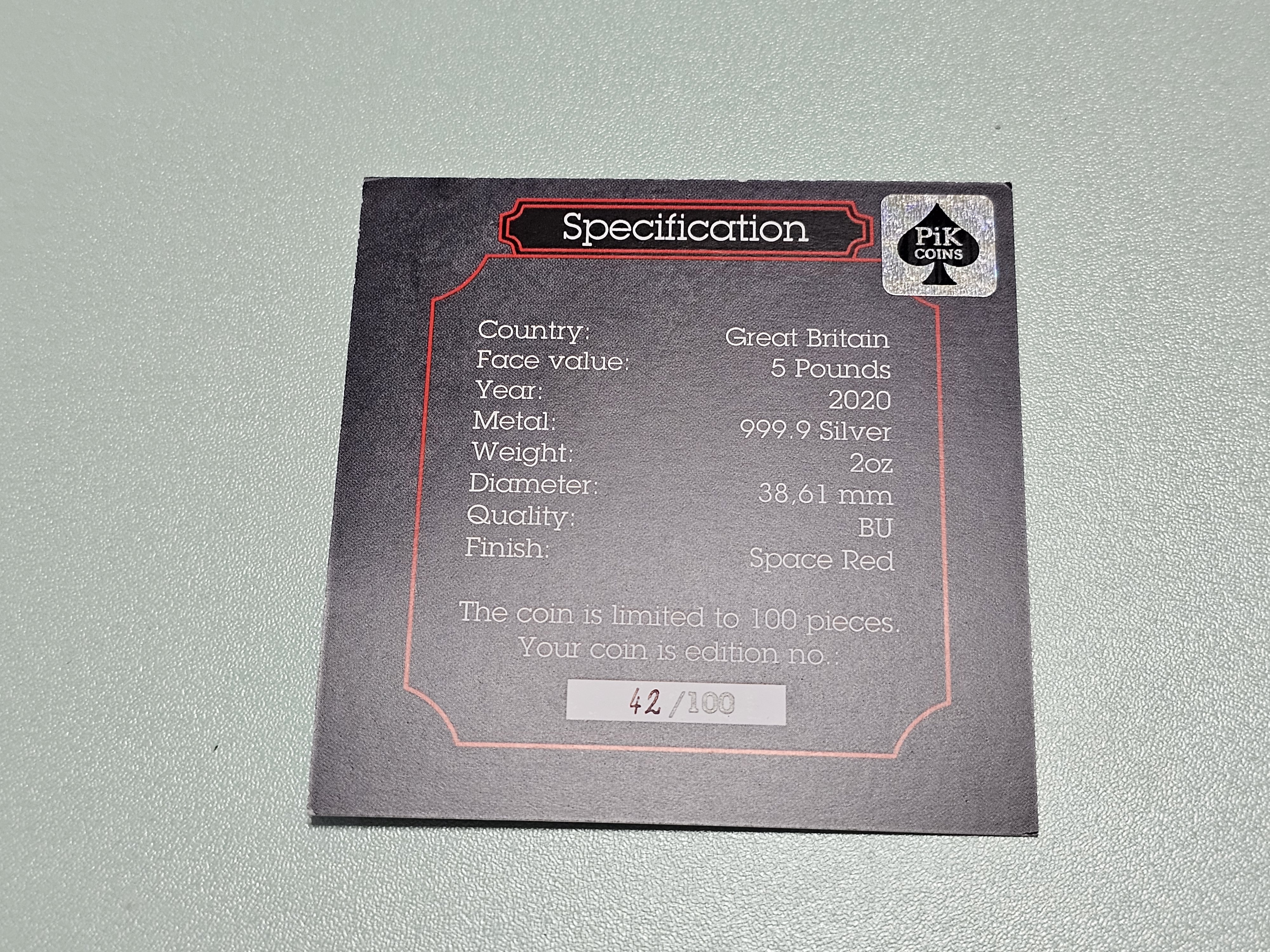 [위탁판매] WHITE LION Mortimer Space Red Queen Beasts 2 Oz Silver Coin 5£ United Kingdom 2020