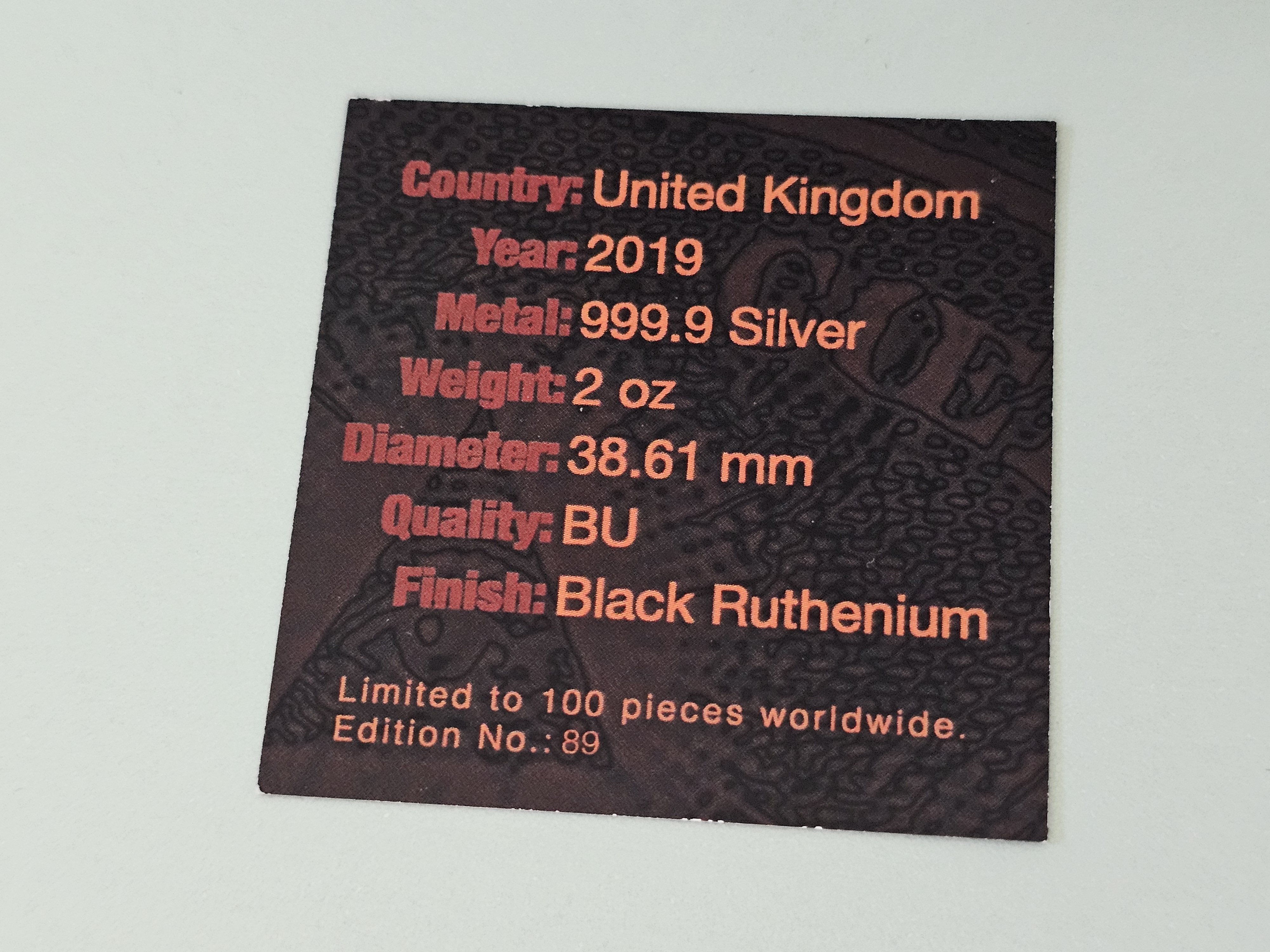 [위탁판매] YALE Queen Beasts Ruthenium 2 Oz Silver Coin 5£ United Kingdom 2019