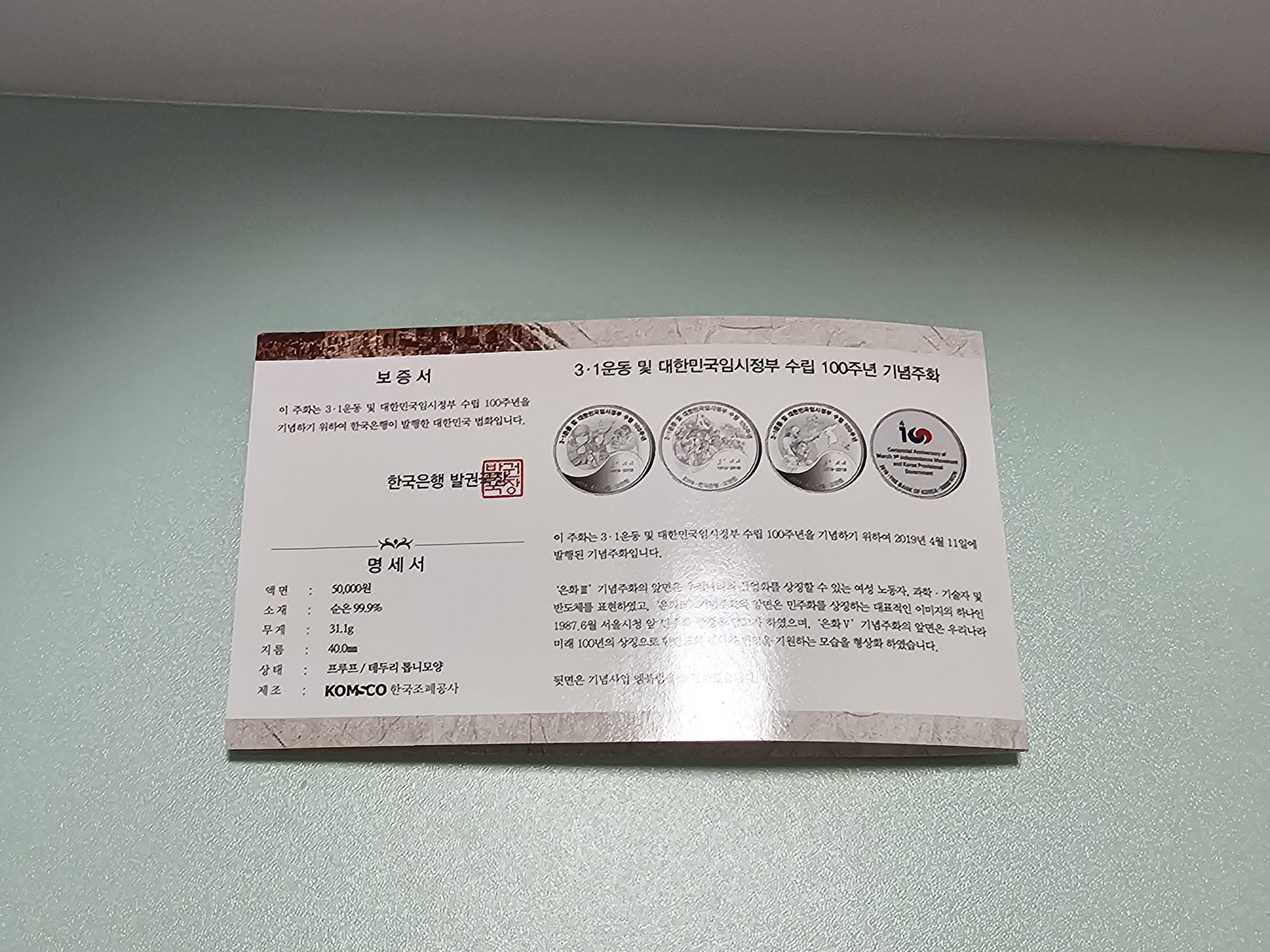 [위탁판매] 3.1운동 및 대한민국임시정부 수립 100주년 기념주화