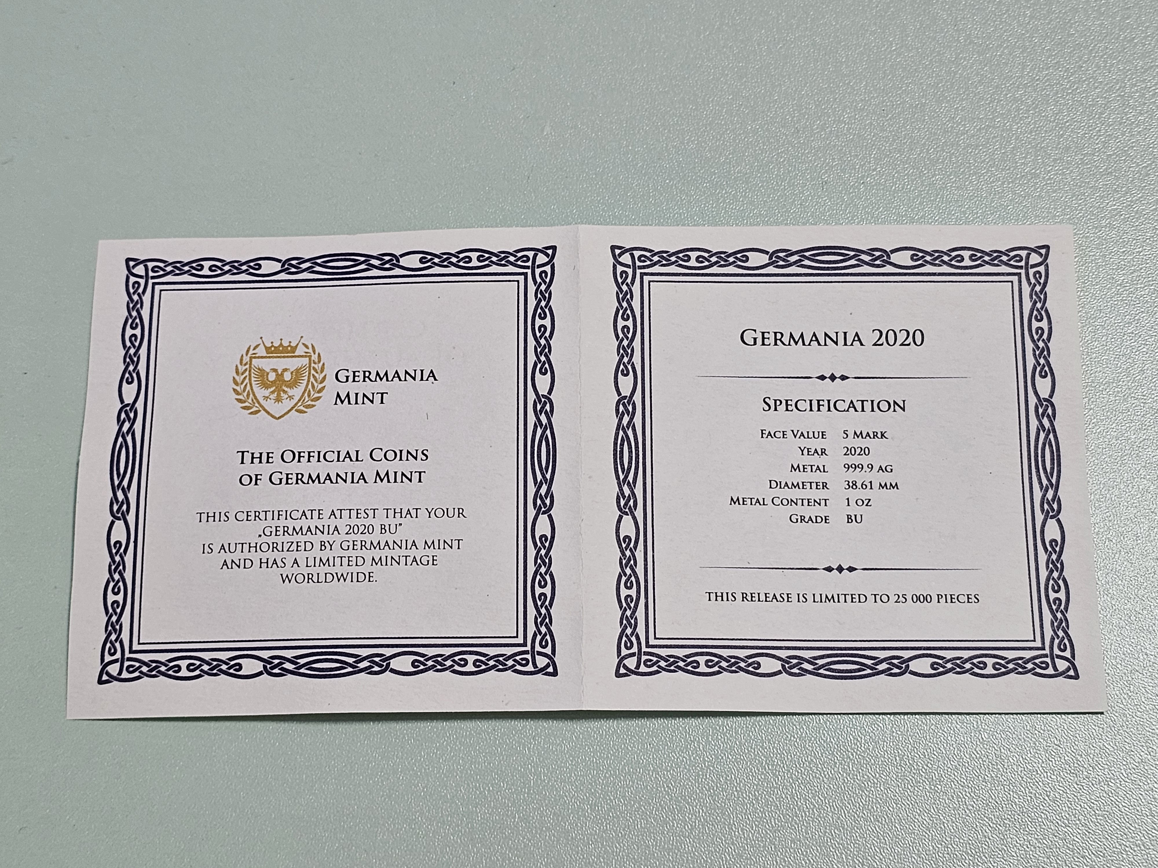 [위탁판매] 2020 Germania 5 Mark 1 oz Silver BU