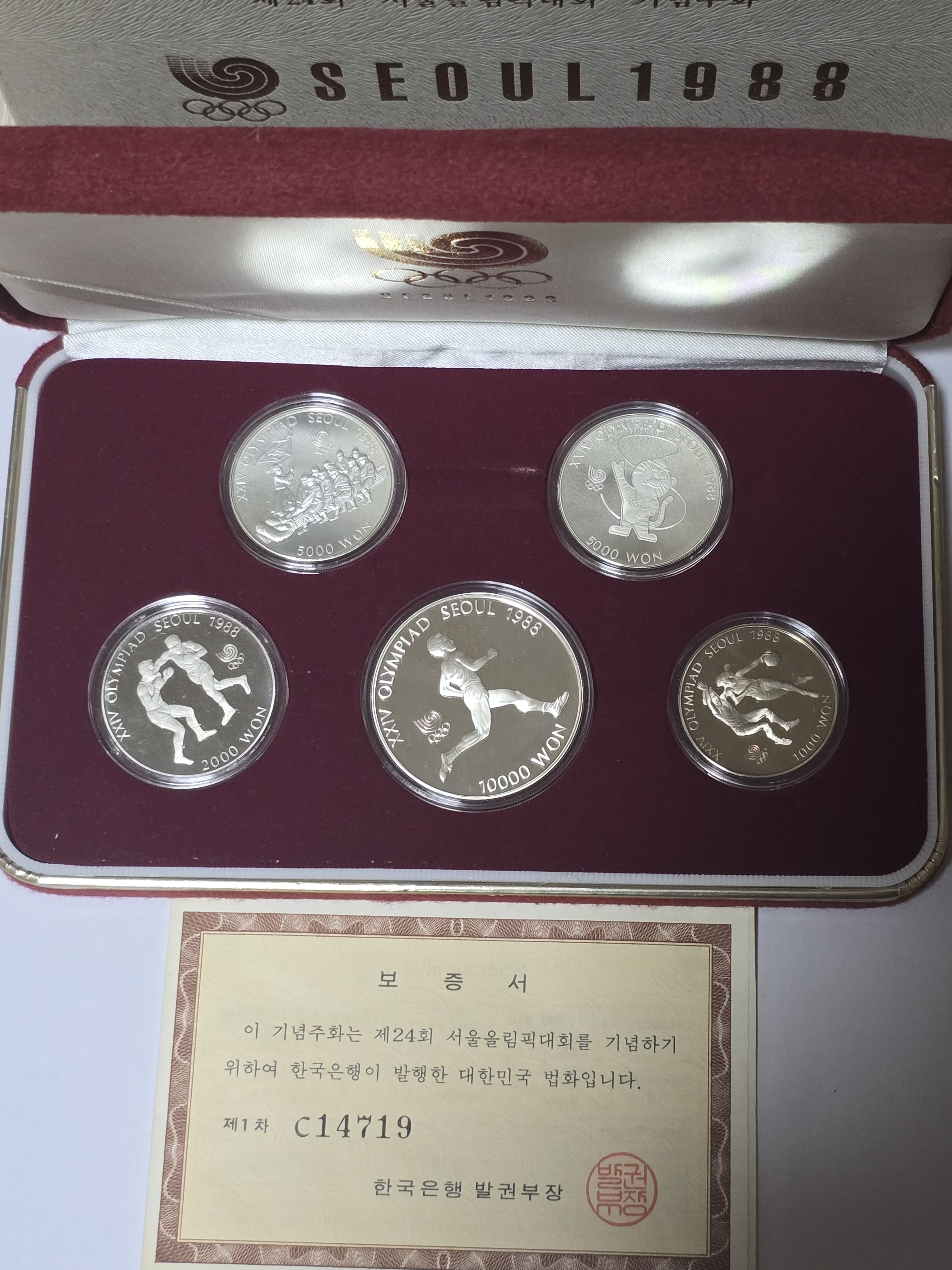 [위탁판매] 1988 서울올림픽 기념은화 3차 5종 세트, 프루프, 수집용 코인