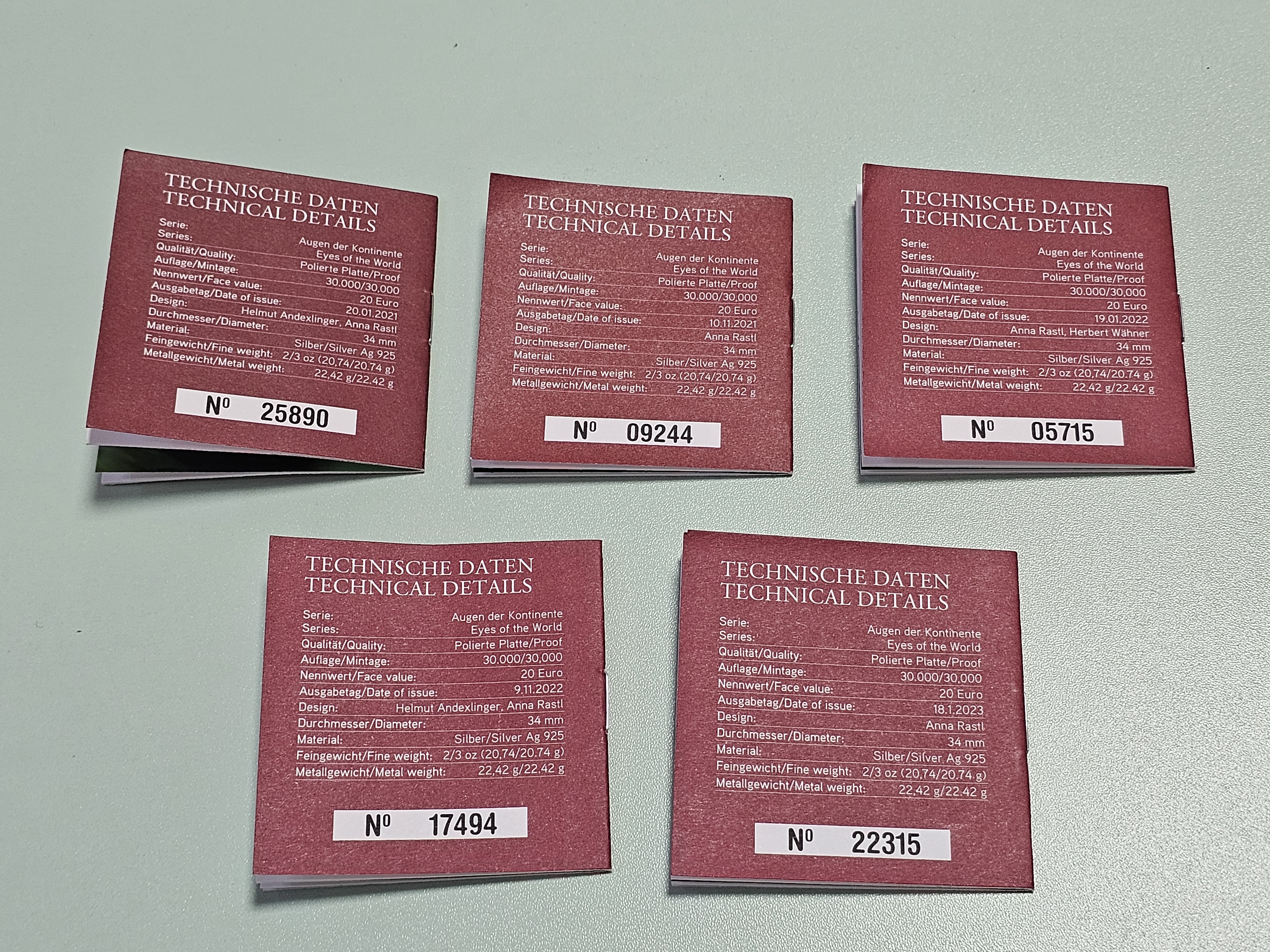 [Austrian Mint사의 세계의 눈(Eyes Of the World) 시리즈] 1. Australia – The Serpant Creator 2. Europe – The Wisdom of The Owl 3. Asia – The Power Of The Tiger 4. Africa – The Serenity of the Elephant 5. American – The Healing Power Of The Bear * 전용 Collector box