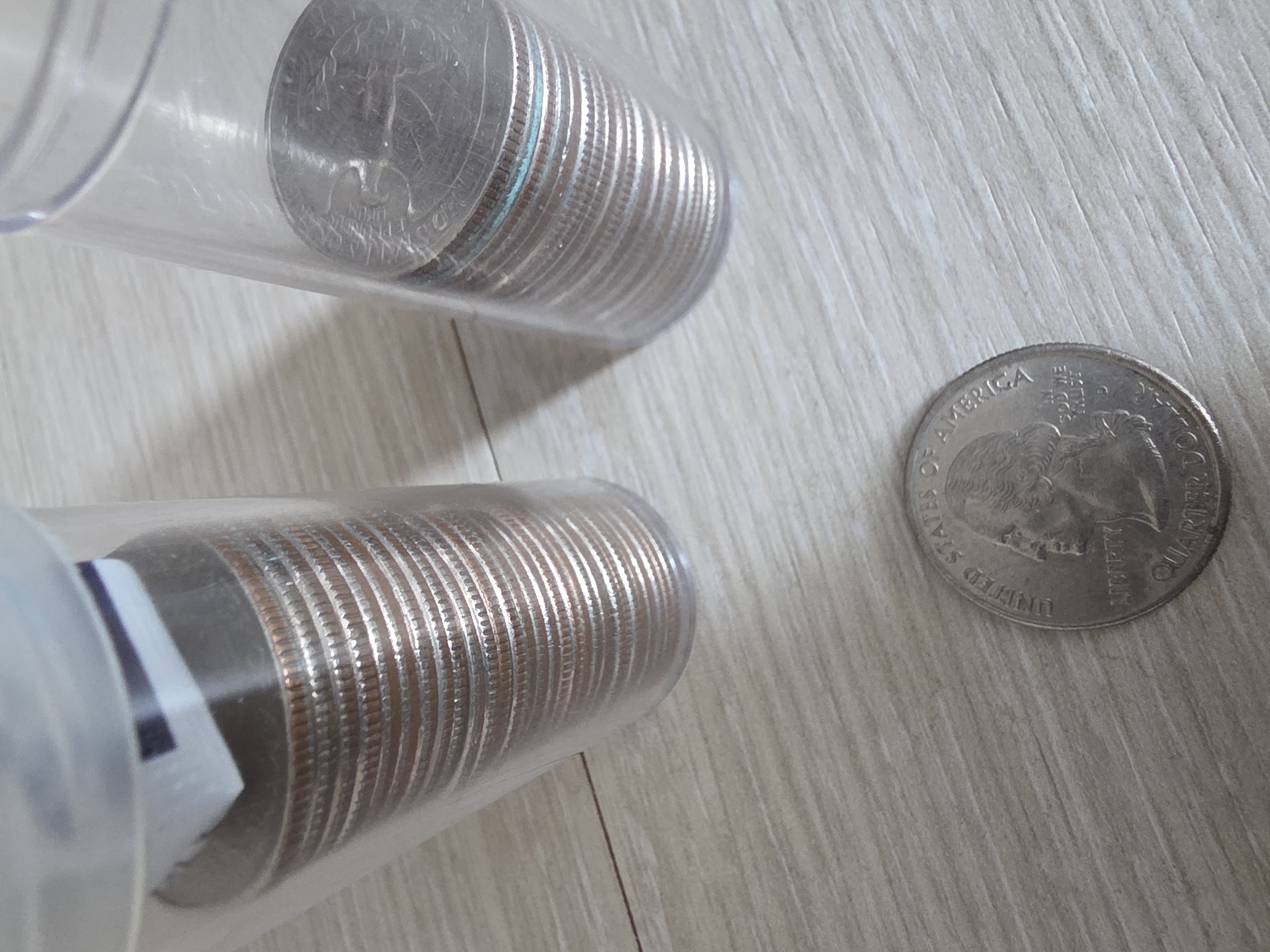 25센트동전 50개, 5센트 400개, 1센트(링컨)5개, 1센트(인디언)1개 ,1다임 1개 ,1906년 리버티 5센트 1개 총 458개