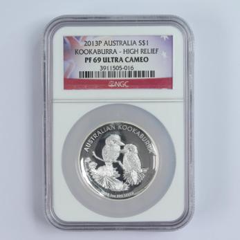 2013 Australia 1 Oz Silver High Relief Kookaburra NGC PF69 [2013년 호주 1온스 쿠카부라 하이릴리프 은화 NGC PF69]