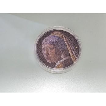 2019 Palau 3Oz Silver Girl With a Pearl Earring Vermeer Great Micromosaic Passion Coin