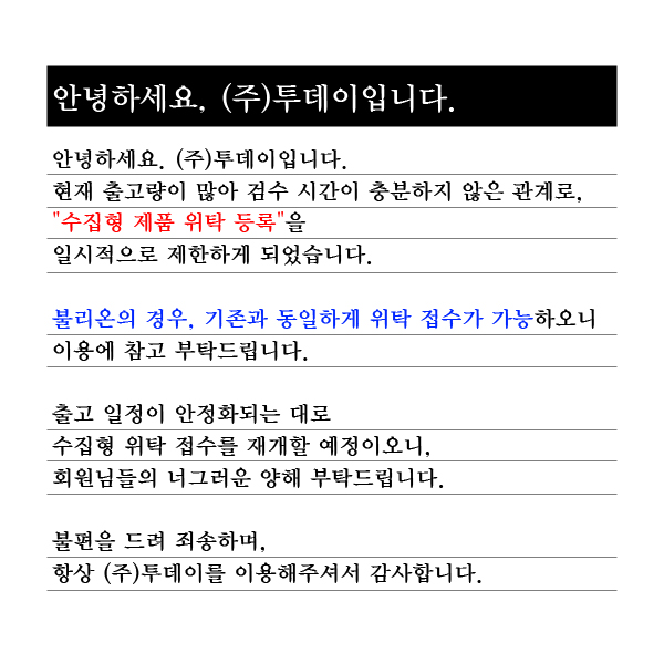 투데이는 고객님들께 더 나은 구매 경험과 수집 만족을 드리기 위해